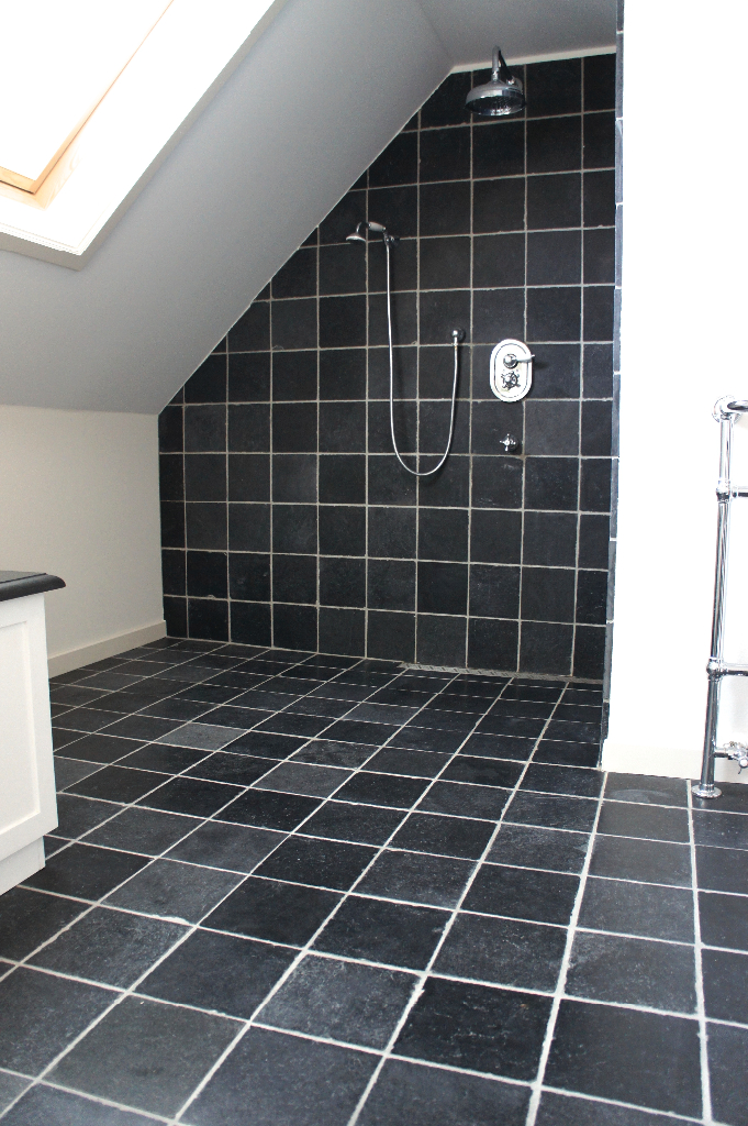 De familie Capelle was op zoek naar een verouderde tegel voor hun beneden verdieping. Ze vonden de Harappa stone het mooist. Daarna besloten ze om ook de toiletten en de badkamer te betegelen met deze prachtige natuursteen. Onze tegelzetters van het TegelzettersGilde verwerkten daarna de tegels.