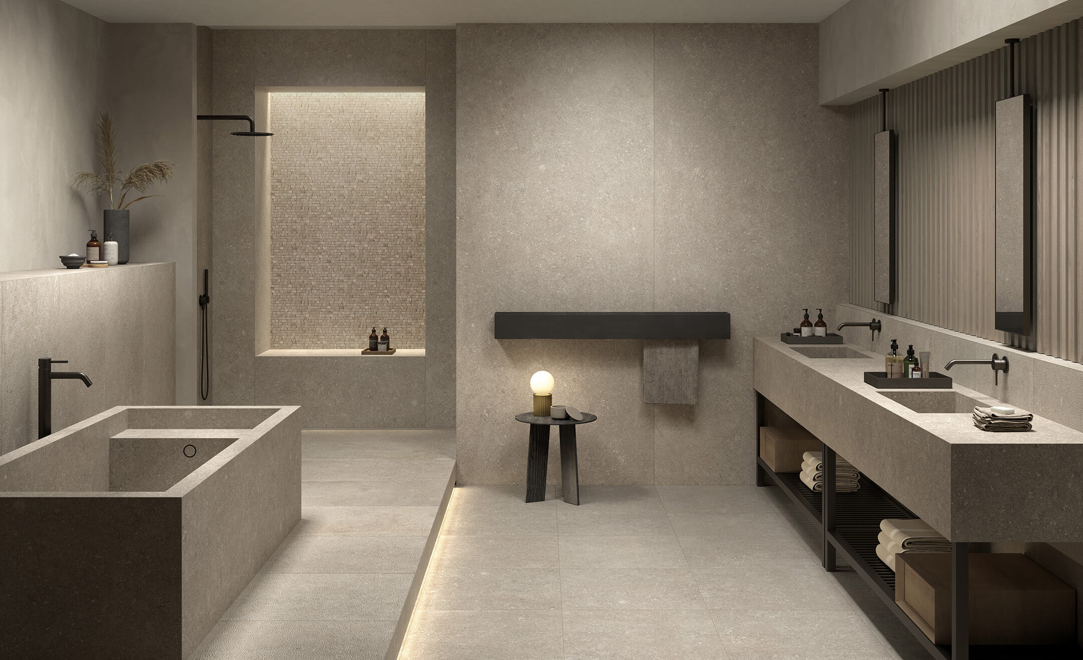 - Carved Oppervlak: Het Carved oppervlak van Kronos Le Reverse – Dune Carved is een verwijzing naar de oppervlaktebehandeling van het materiaal, met een gebouchardeerd-effect dat de natuurlijke structuur benadrukt. Dit voegt een boeiende dimensie toe aan het visuele en tactiele aspect van de tegels.