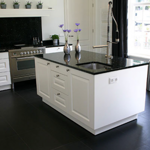 Een prachtige zwarte graniet die dankzij z’n afwerking van vele voordelen geniet.