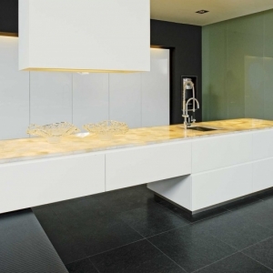 De Alexander Black wordt geleverd met strak gezaagde zijdes en zonder facet, waardoor het graniet erg strak verwerkt kan worden. Deze vloer komt dan ook het beste tot z’n recht in een moderne inrichting.