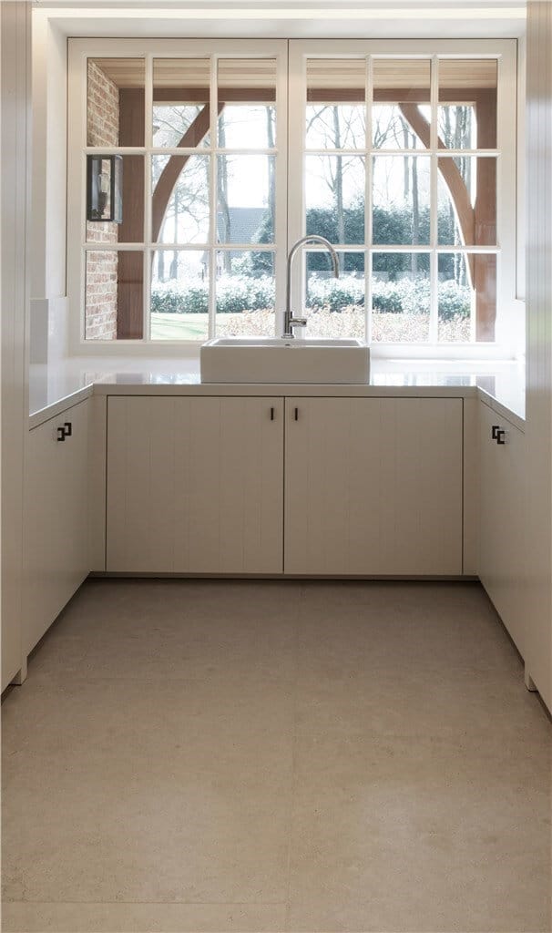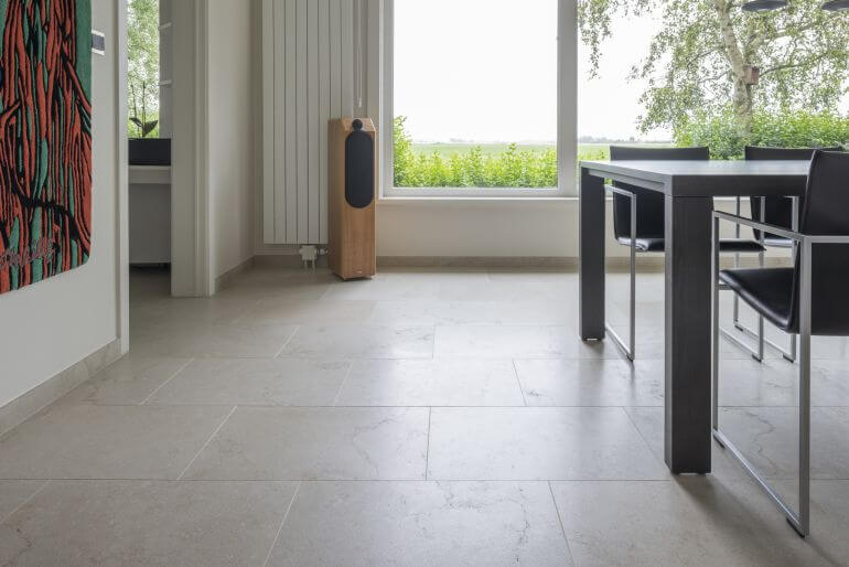 Doordat de tegels van deze kalksteen strak gezaagd zijn, is het mogelijk om deze met een zeer nauwe voeg te verwerken. Hierdoor is de tegel eenvoudig te combineren met een klassieke of moderne inrichting.