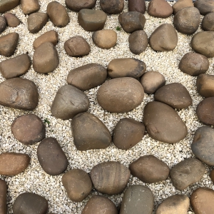 Deze geel/bruin achtige keien worden vaak als extra detail gebruikt. Wanneer u bijvoorbeeld een flinke oppervlakte met geel split heeft afgewerkt kan het split er op zichzelf nog vrij kaal uitzien. Wanneer u het split dan aankleed met deze prachtige Beach Pebbles Brown – Yellow, zoals op onderstaande foto, heeft u een stijlvolle oplossing, zonder dat u hier te veel onderhoud of werk aan heeft.