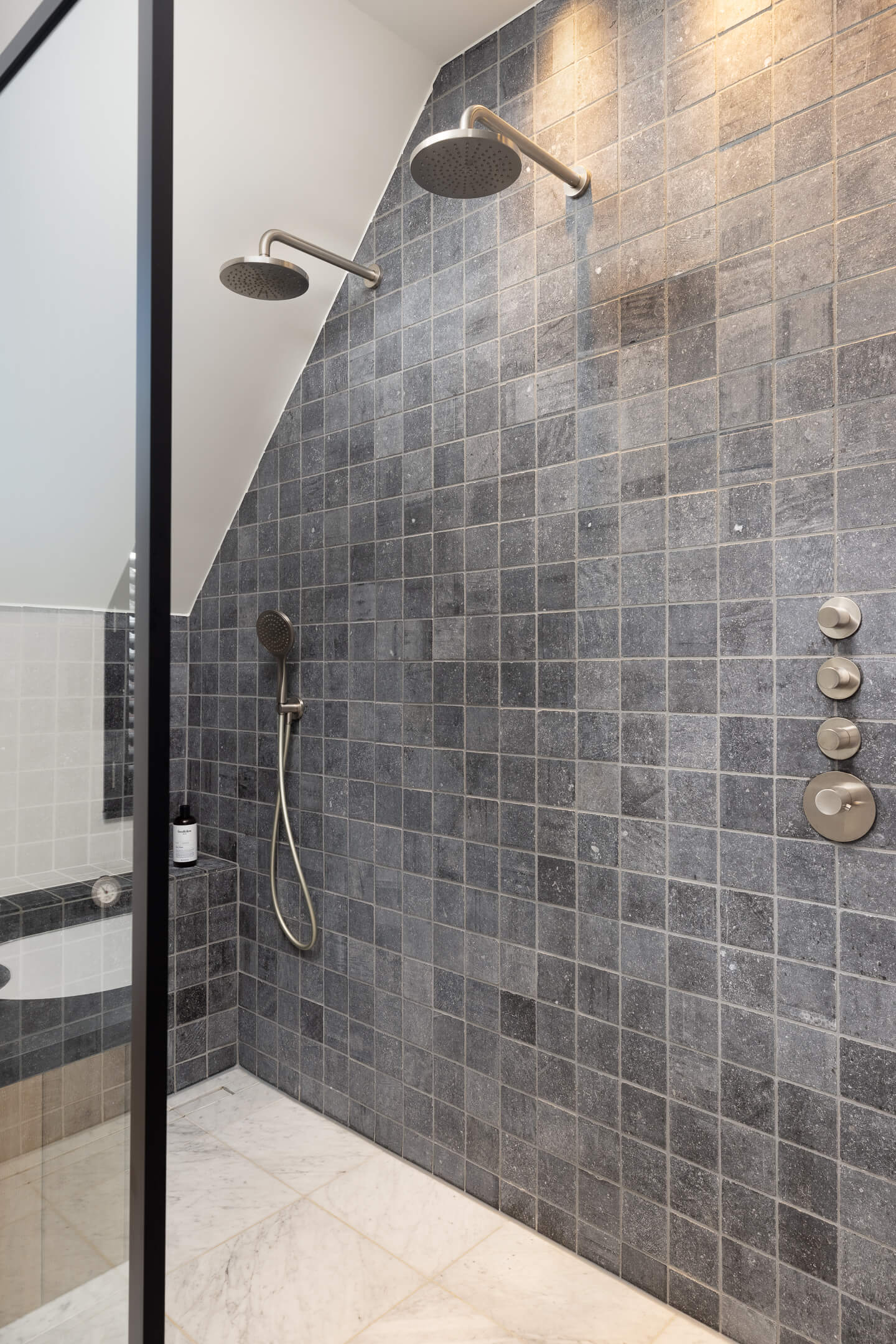 Tip! De Belgisch Hardsteen Efesus is ook zeer mooi als wandtegel.