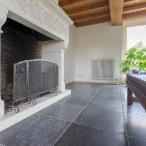 De Belgisch Hardsteen Enostyl Donker is een échte sfeervloer. De gepatineerde en geborstelde toplaag van deze tegels geven deze steen dan ook een heerlijk doorleefd en authentiek karakter. Door te kiezen voor deze Belgische hardsteen krijgt u een mooi beeld op de aanwezige fossielen in de Belgisch hardsteen.