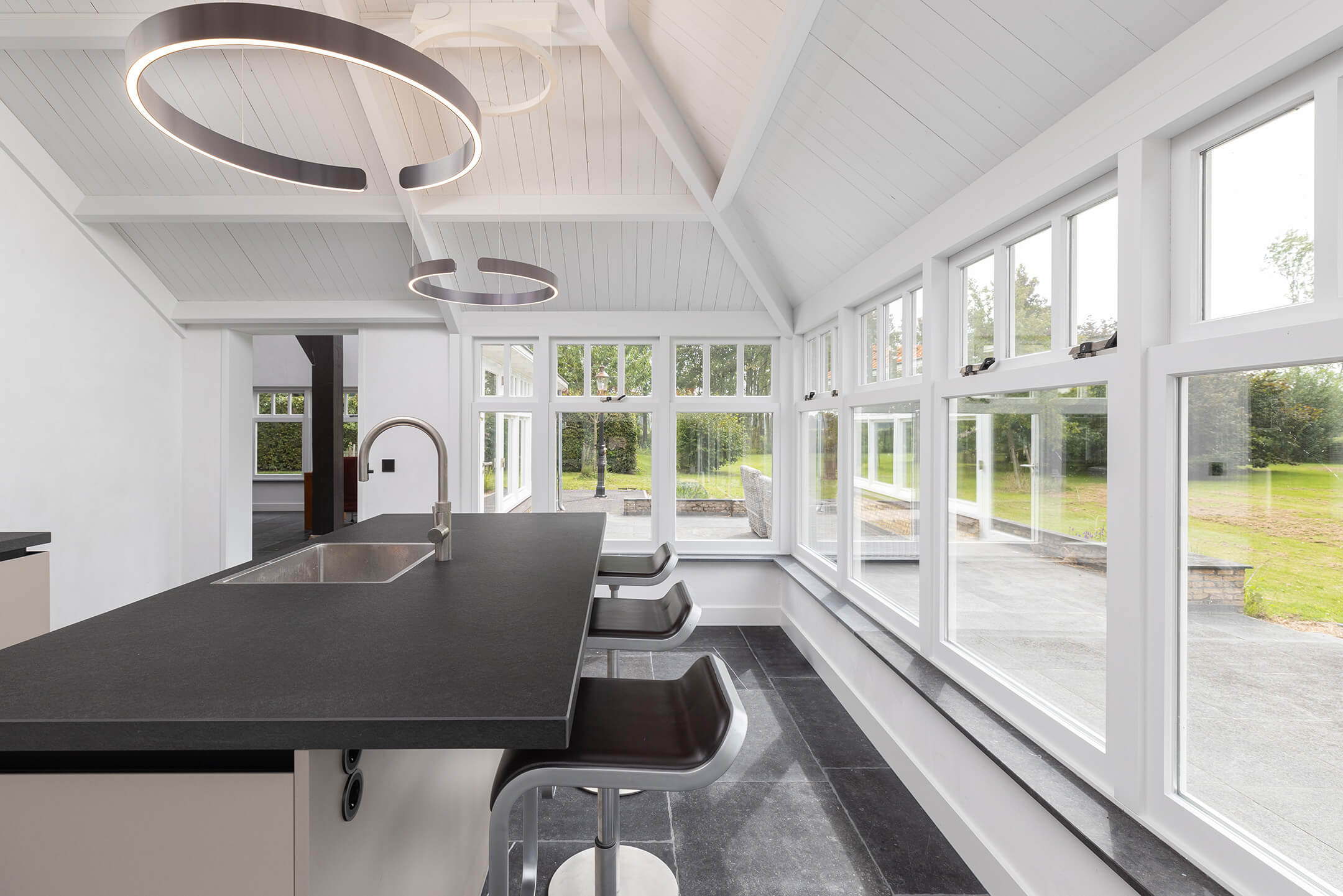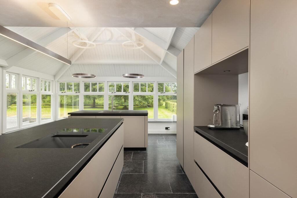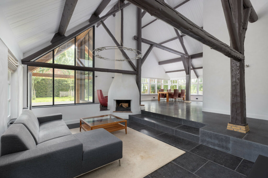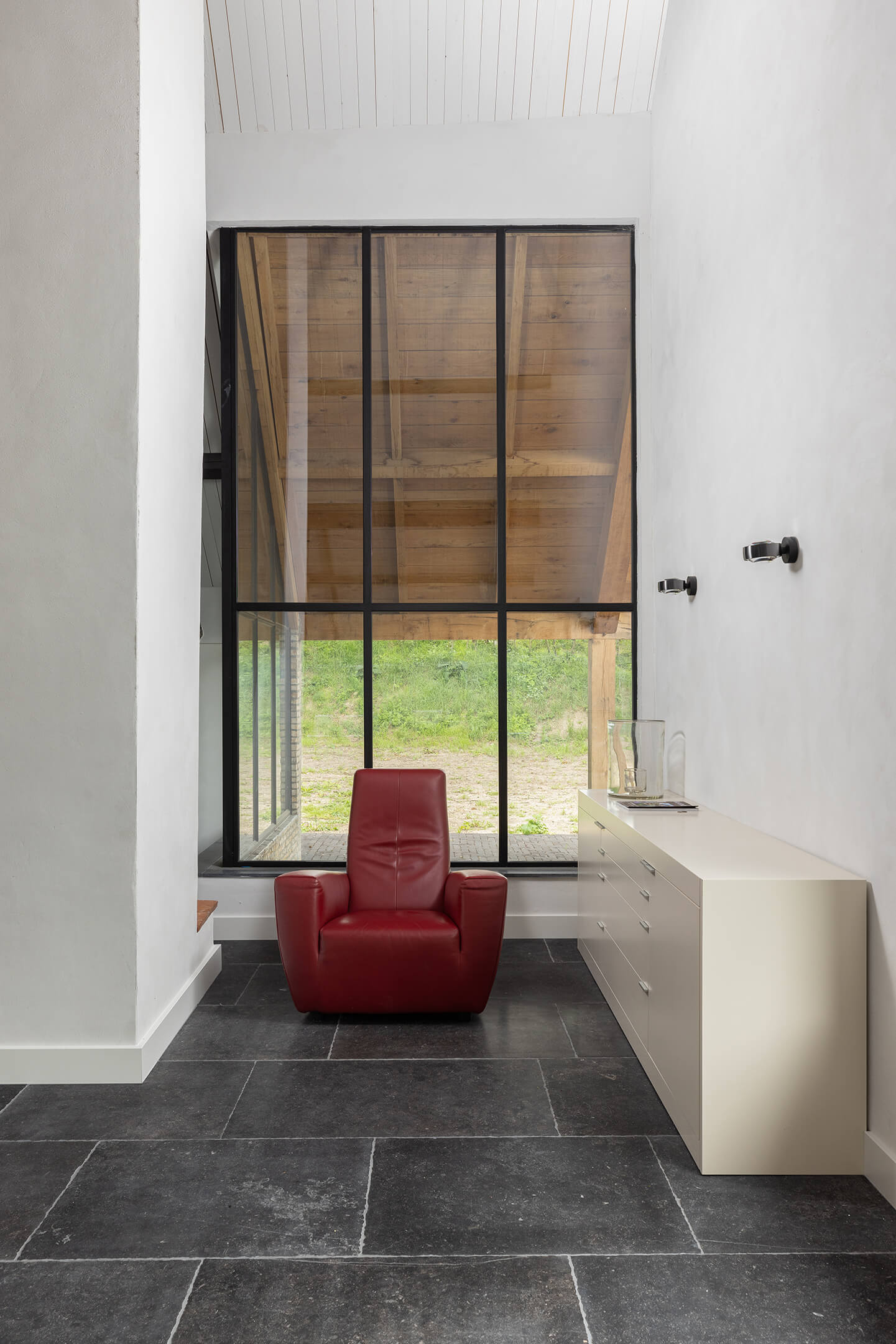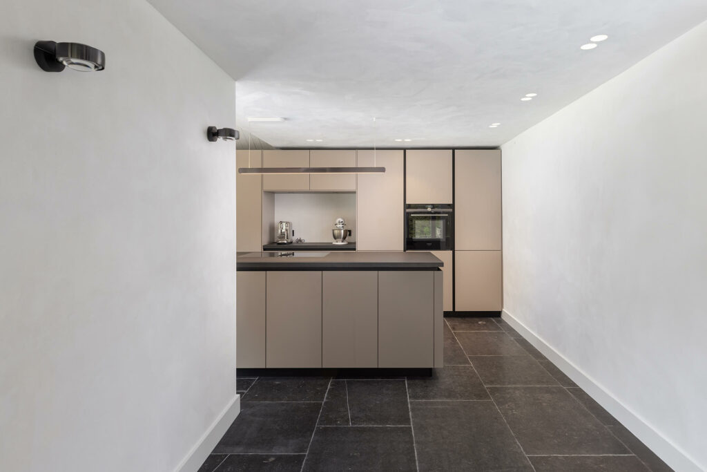 Geheel in stijl en met respect voor de bouwstijl van het huis is hier gekozen voor een Belgisch hardsteen vloer. Aangezien de vloer niet te verouderd mocht zijn, is hier gekozen voor onze Belgisch hardsteen “Anvers Antique”. Deze unieke afwerking staat bekend om zijn mat en blauw geschuurde oppervlak en gebroken zijdes. Een perfecte combinatie waardoor deze steen zowel een landelijk, als moderne uitstraling heeft.