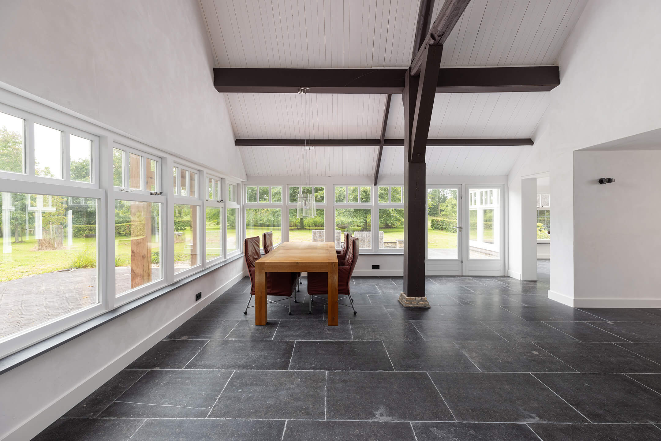Belgisch Hardsteen Vloertegels verwerkt in buitenverblijf
