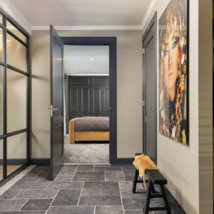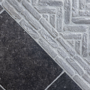 De Belgisch Hardsteen Look abdij Verouderd is een keramische imitatie van verouderd Belgisch hardsteen. Dit wil zeggen dat het materiaal gemaakt wordt van extra hard gebakken porselein, waarna er onder hoge druk een print op gemaakt wordt.