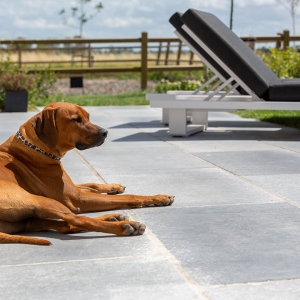 Deze Belgisch Hardsteen is manueel verouderd en licht geschuurd. Dit wil zeggen dat de zijdes van deze tegels prachtig verouderd zijn en dat de toplaag met de hand geschuurd wordt tot hij zijn oorspronkelijke lichte blauw / grijze kleur heeft. Deze kleur is de reden dat deze steen ook wel “Blauwsteen” genoemd wordt. Het voordeel van deze lichte schuring is o.a. dat de tegels na deze schuring niet gevoelig meer zijn voor verkleuring. Een ander groot voordeel is dat krasjes haast niet zichtbaar zijn in deze toplaag.