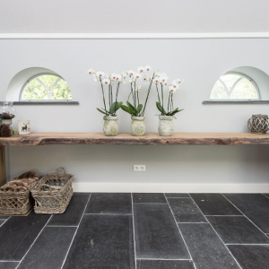 De Belgisch Hardsteen Monastery is in alle opzichten een schitterende Belgisch hardsteen vloer. Wanneer u op zoek bent naar sfeer, dan is dit uw vloer. De gebroken zijdes en handgeschuurde randen geven het hardsteen een verouderd uiterlijk, waardoor de tegel een prachtige landelijke en authentieke uitstraling krijgt.