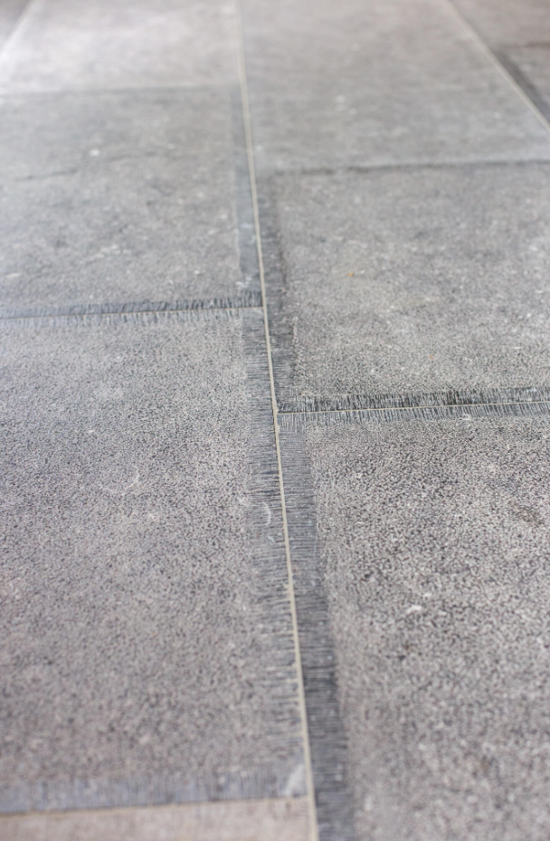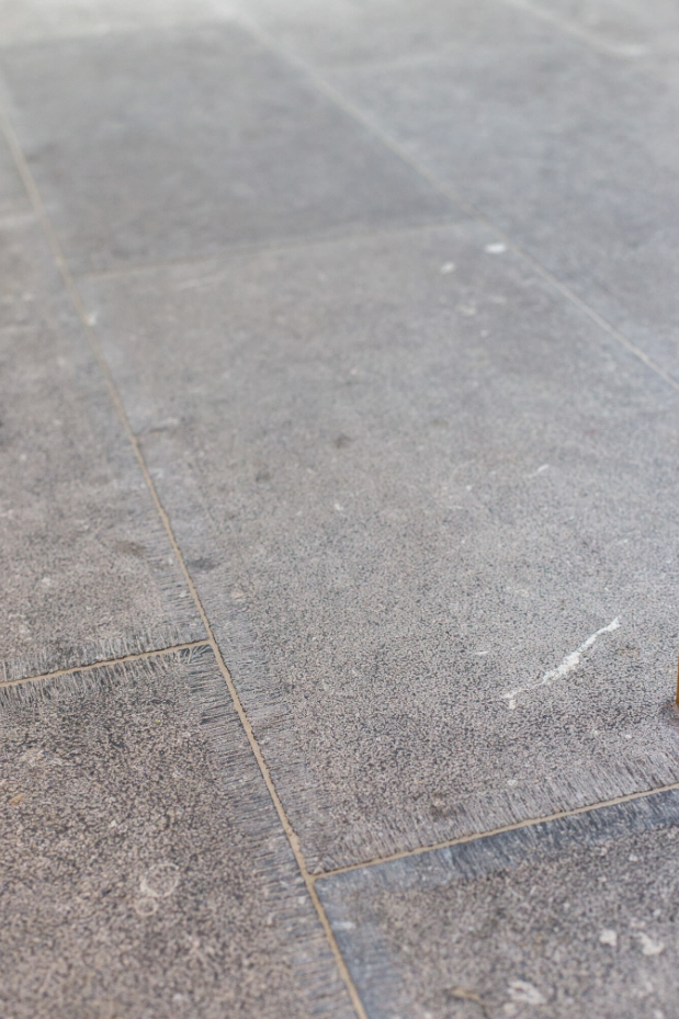 Het ruwe oppervlak van de Belgisch Hardsteen Old Country Style is niet glad en gemakkelijk in het onderhoud. Dit komt o.a. doordat het gebouchardeerde oppervlak ook nog geborsteld is. Het is dus een ideale vloer.