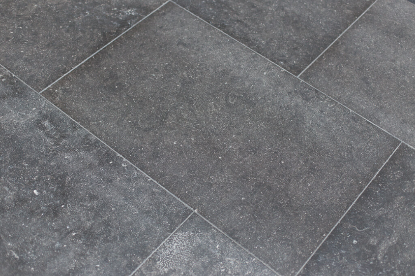 Belgisch Hardsteen Silk is een donkere vloer en kan gevoegd worden met een antraciete voeg. Dit zorgt voor een rustige uitstraling waarbij de vloer vrijwel 1 geheel wordt.