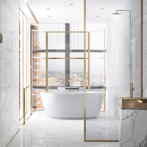 De klassieke uitstraling van Bianco Carrara blijft gewaarborgd, terwijl het gehele onderhoud vervalt.