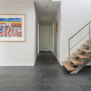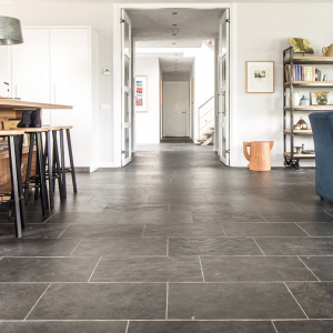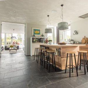 Doordat de Black Berry Leisteen een natuursteen is met rustige antraciet / grijze kleurtinten, is deze vloer tijdloos en dus in ieder interieur toepasbaar.