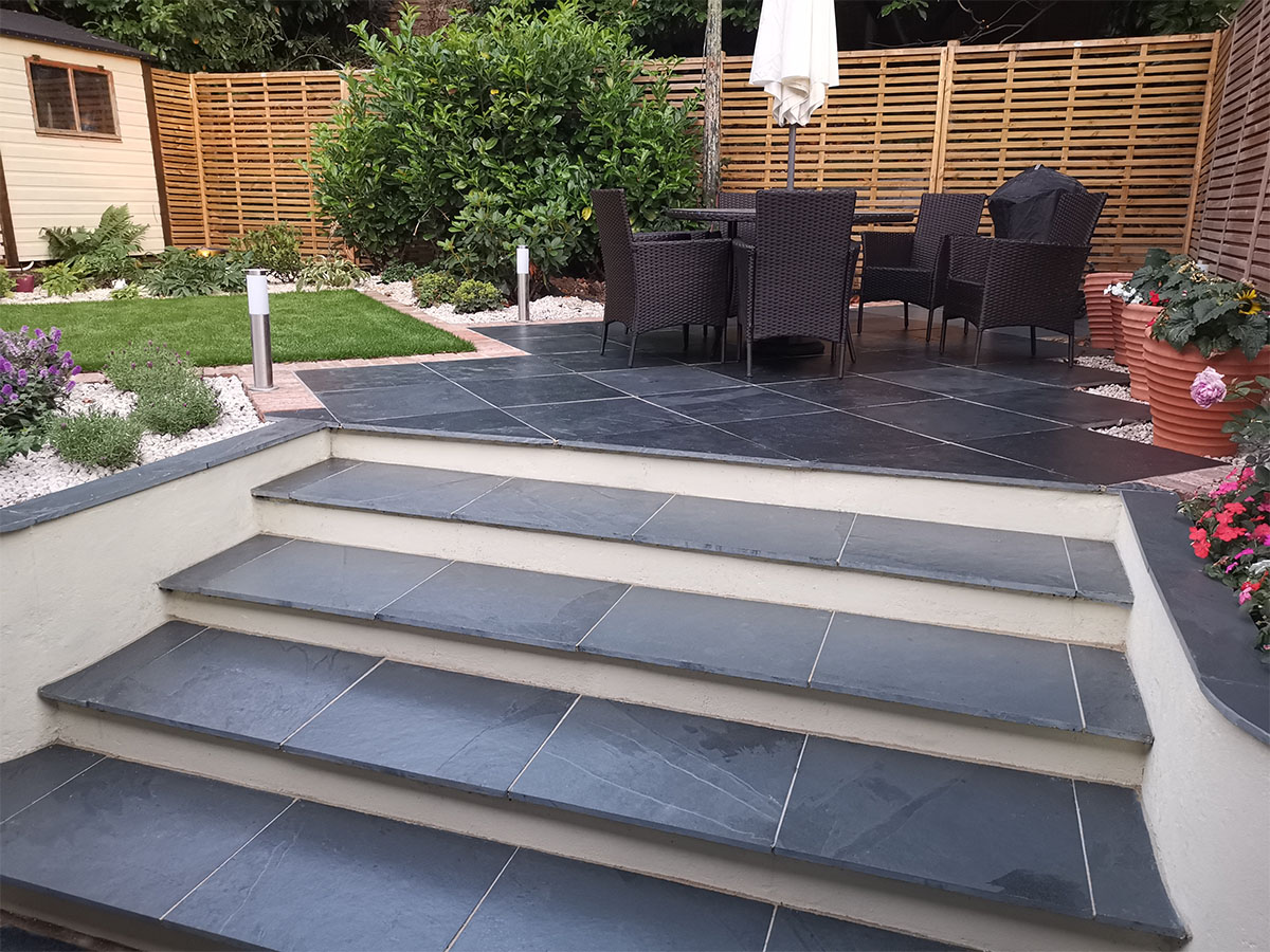 De Black Berry is een zeer populaire Braziliaanse leisteen voor zowel binnen als buiten. Door zijn zwart / grijze kleurnuances en breukruwe oppervlak, is dit een schitterende neutrale terrastegel die in iedere omgeving een toegevoegde waarde heeft.