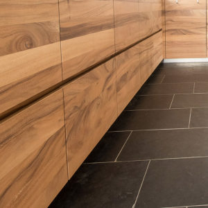Zij wilden graag een mooie vloer van natuursteen voor hun woning. Na een bezoek aan onze showroom viel hun keuze op de Blackberry leisteen, vanwege de rustige structuur en de prachtige diepzwarte kleur.