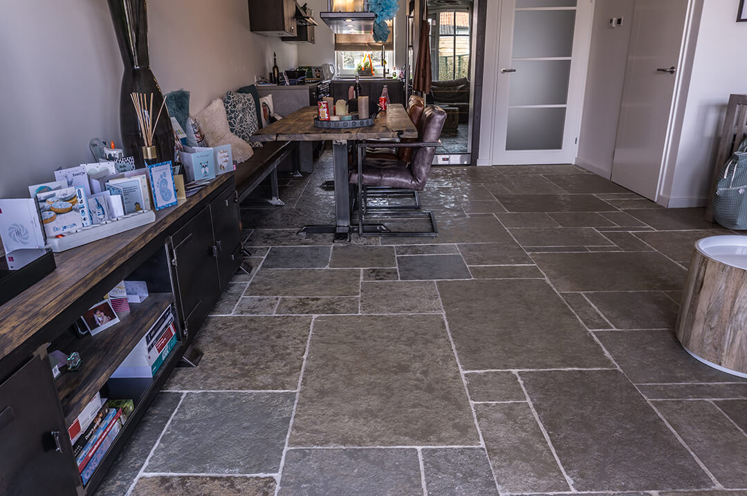 Naast mooi is deze kalksteen keihard. Dit zorgt voor een heerlijke leefbare toplaag. Over het algemeen zullen lichte gebruikerssporen en krasjes dan ook niet opvallen op deze vloer.