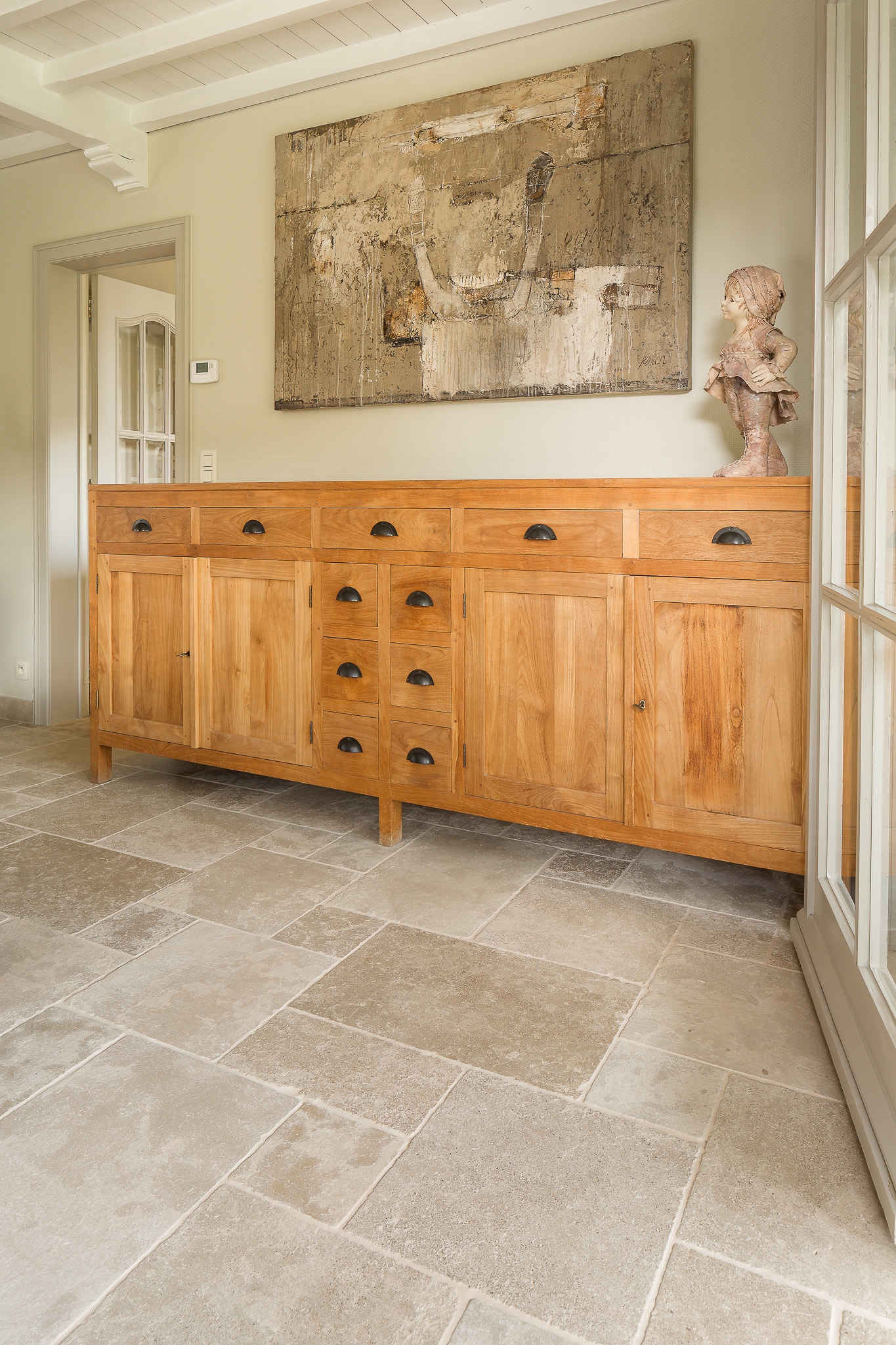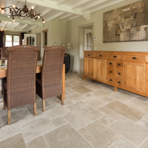 Kalksteen is een bijzonder gesteente met een geheel eigen karakter. De rustige structuur van het gesteente zorgt voor een warme natuurlijke uitstraling. De Authentique de Dordogne is gesorteerd op kleur. Dit wil zeggen dat er 2 zandkleurige tinten gemixt zijn. Op deze manier krijgt de vloer een geheel eigen stijl en wordt met name het landelijke aspect versterkt. De Authentique de Dordogne wordt geschuurd en getrommeld geleverd. Hierdoor ontstaat een mat oppervlak met subtiel verouderde afgeronde zijdes.