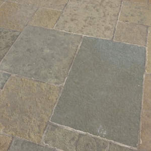 Bourgondische dallen op uw terras? Het kan! Deze Bourgogne Blanc is een prachtig verouderde en vooral keiharde kalksteen met warme gele kleurnuances.