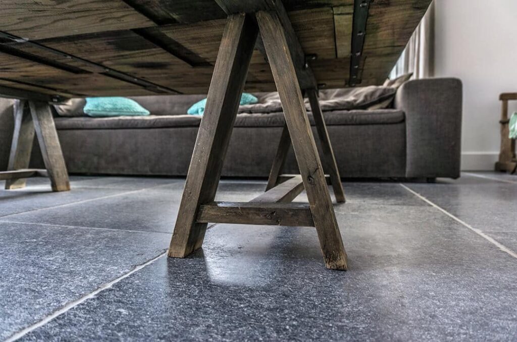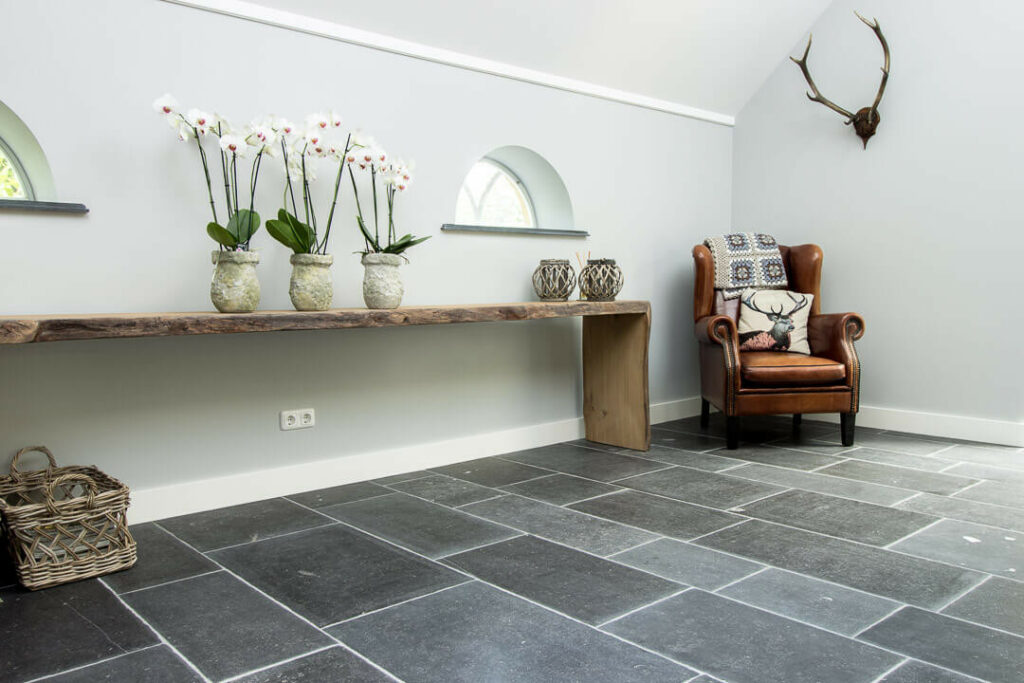 Een groot voordeel van Bourgondische vloeren is, dat deze vloeren door hun doorleefde karakter minder kwetsbaar zijn. Op een verouderde natuursteen kan natuurlijk ook een krasje ontstaan, maar deze zal niet als storend worden ervaren omdat hij opgaat in de afwerking van de tegel. Het is zelfs zo dat sommige van onze Bourgondische vloeren voor een groot deel onderhouden / bijgehouden worden met enkel een zachte bezem.