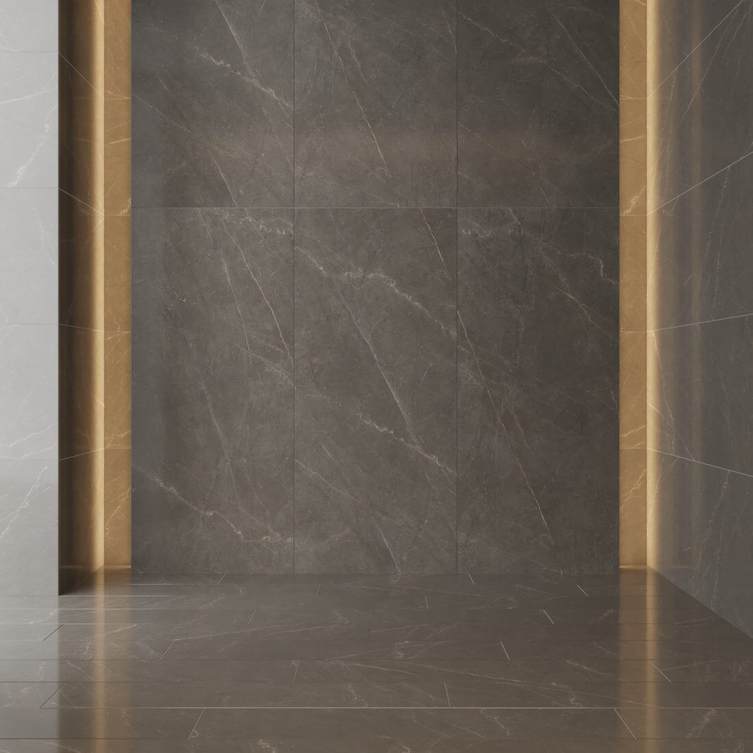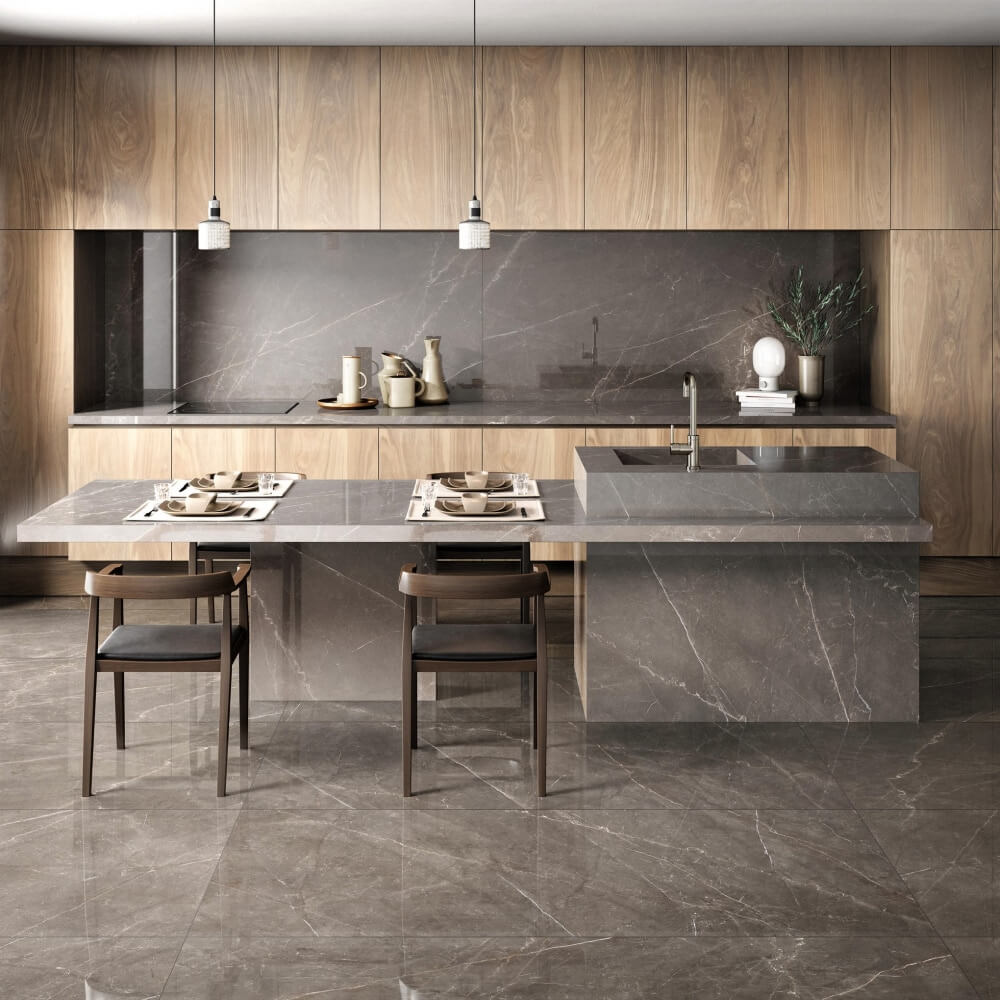 De Bronze Armani marmer look keramiek is door zijn gepolijste oppervlak volledig onderhoudsvrij en is hierdoor overal toepasbaar.