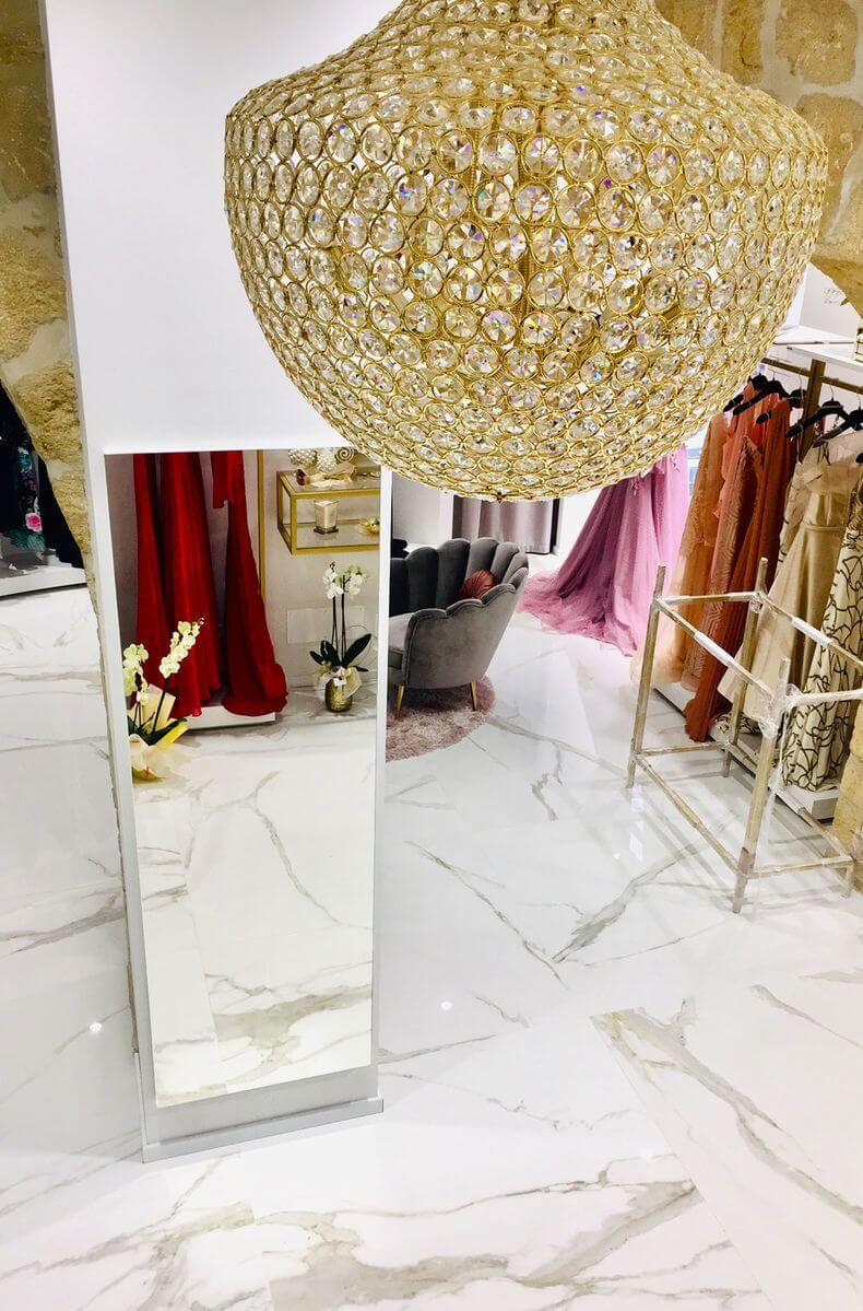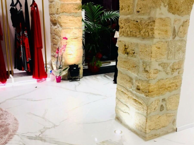 - Gepolijst: Tegels 60×120 cm, dikte 1 cm