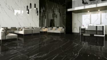 Belvedere Qwartz Look | Kwartsiet Look Keramiek Diepzwarte kwartsiet imitatie met subtiele kwartsaderen.