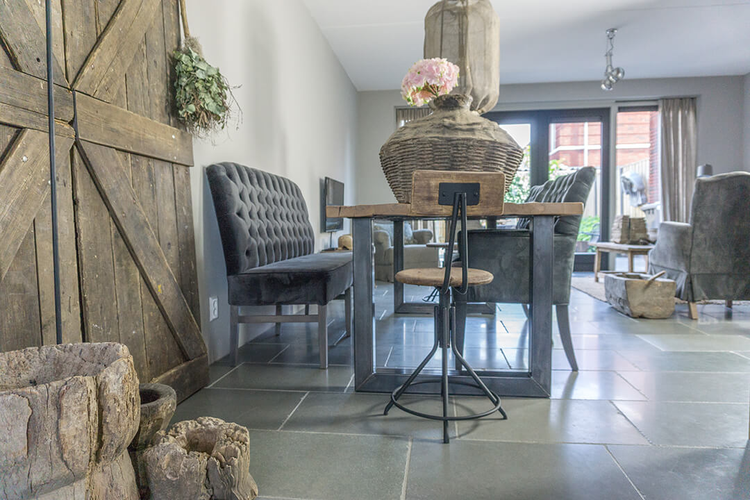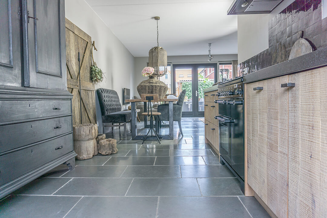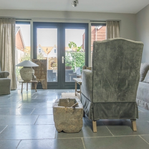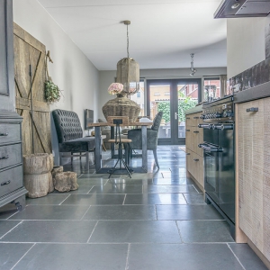 De naam Cottage Stone Grey zegt het al. De Cottage Stone is een tegel die perfect tot zijn recht komt in een landelijke setting. De licht grijze kleurstelling in combinatie met het lichtelijk verouderde oppervlak geven deze leisteen een prachtige authentieke uitstraling. Het grijs van de Cottage Stone Grey bestaat uit bijzondere grijstinten waar zelfs wat groen in te vinden is. Deze vloer is dan ook uniek in zijn uitstraling. Een groot voordeel van grijs is dat er gemakkelijk gecombineerd kan worden met andere kleuren. Dit geeft u veel mogelijkheden tijdens de inrichting van uw huis.