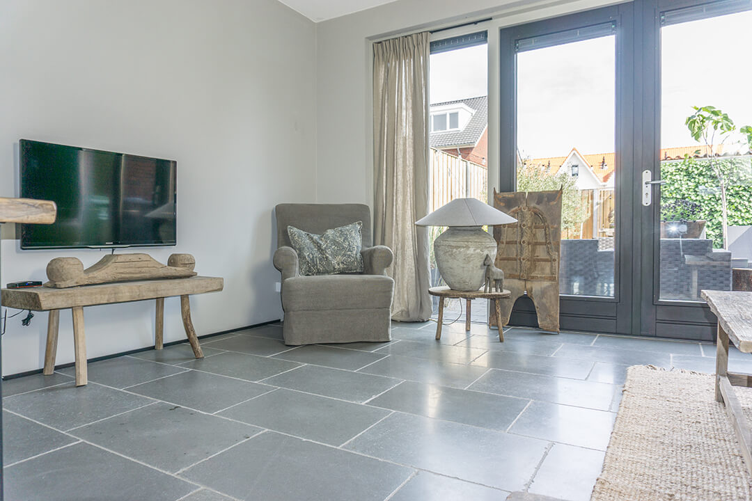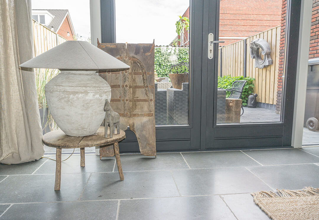De Cottage Stone Grey kan ook prima buiten verwerkt worden. Wel is het belangrijk de tegels dan te verlijmen op een harde ondergrond, zoals beton.