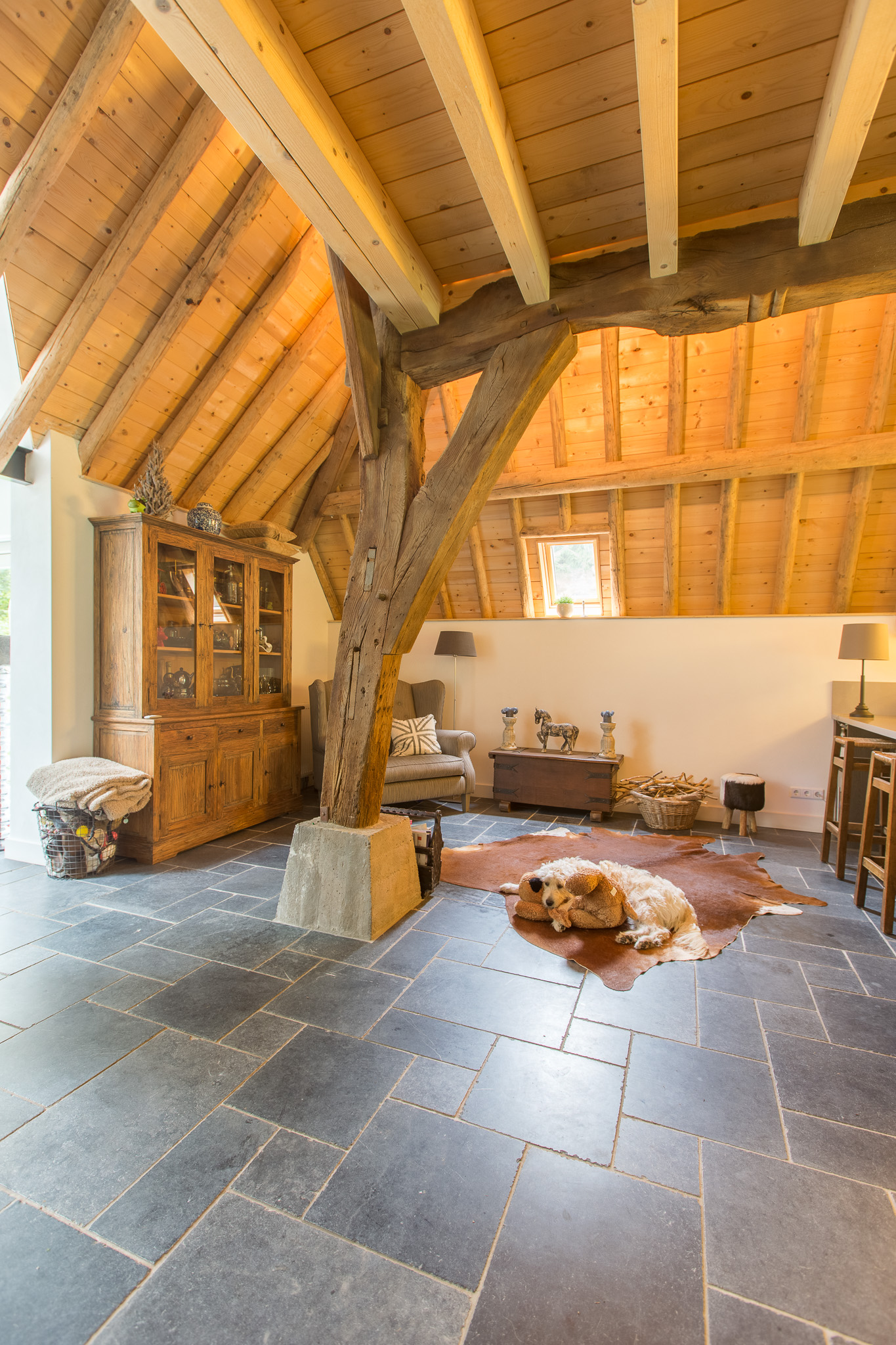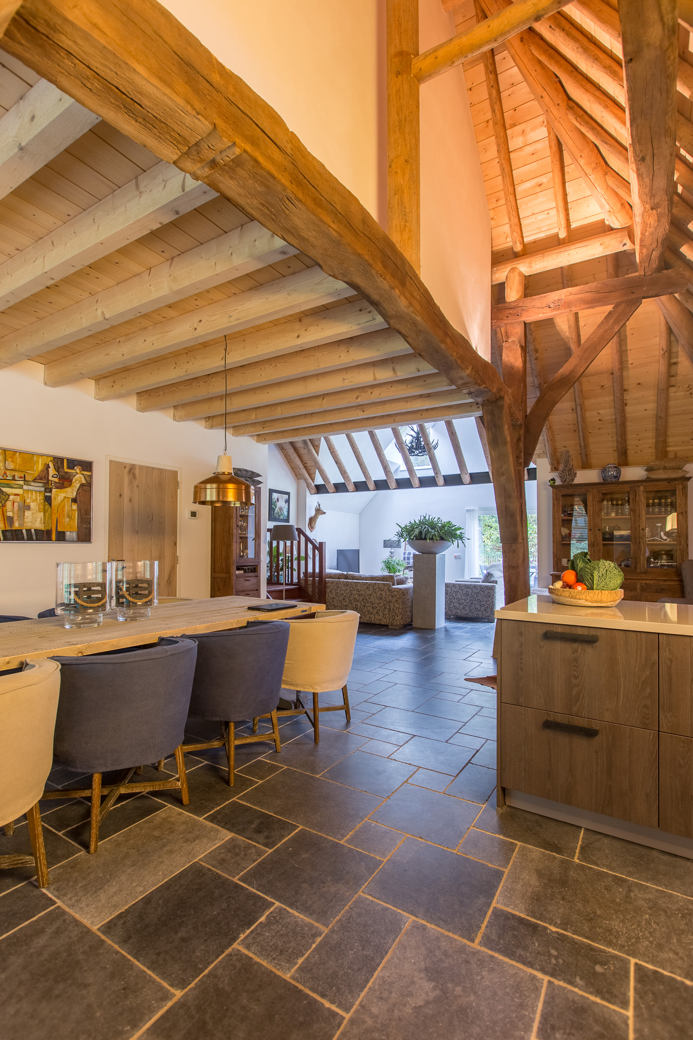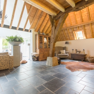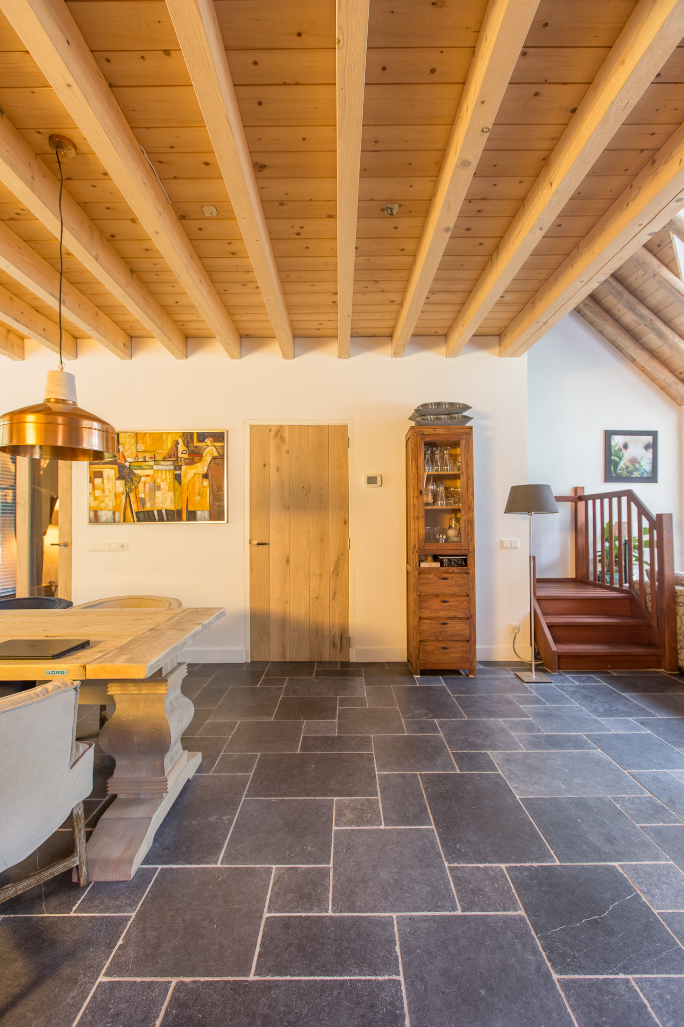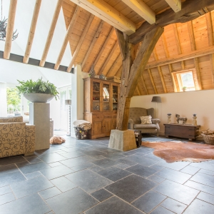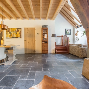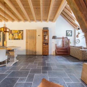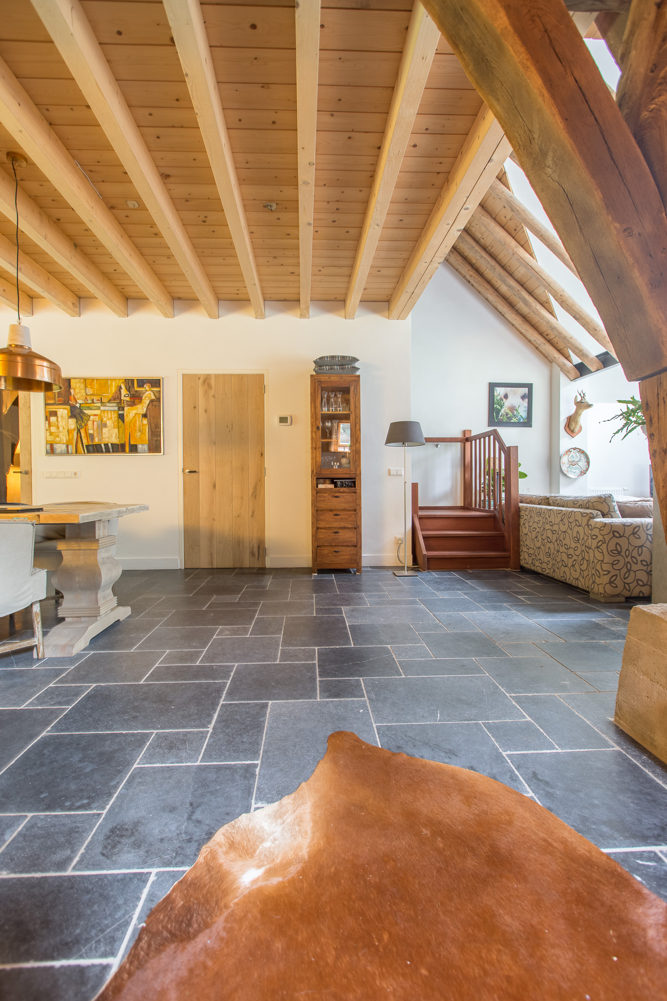 Door de vloer te verwerken in een zogenaamd Romaans verband, past deze vloer perfect bij de uitstraling van het pand en het interieur. Schitterend!