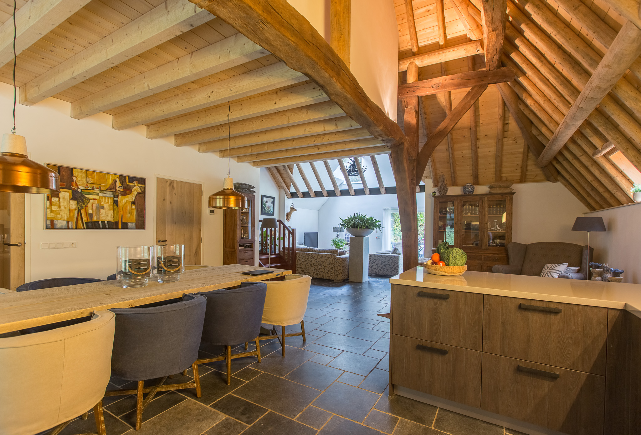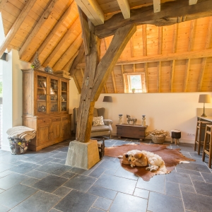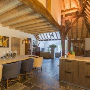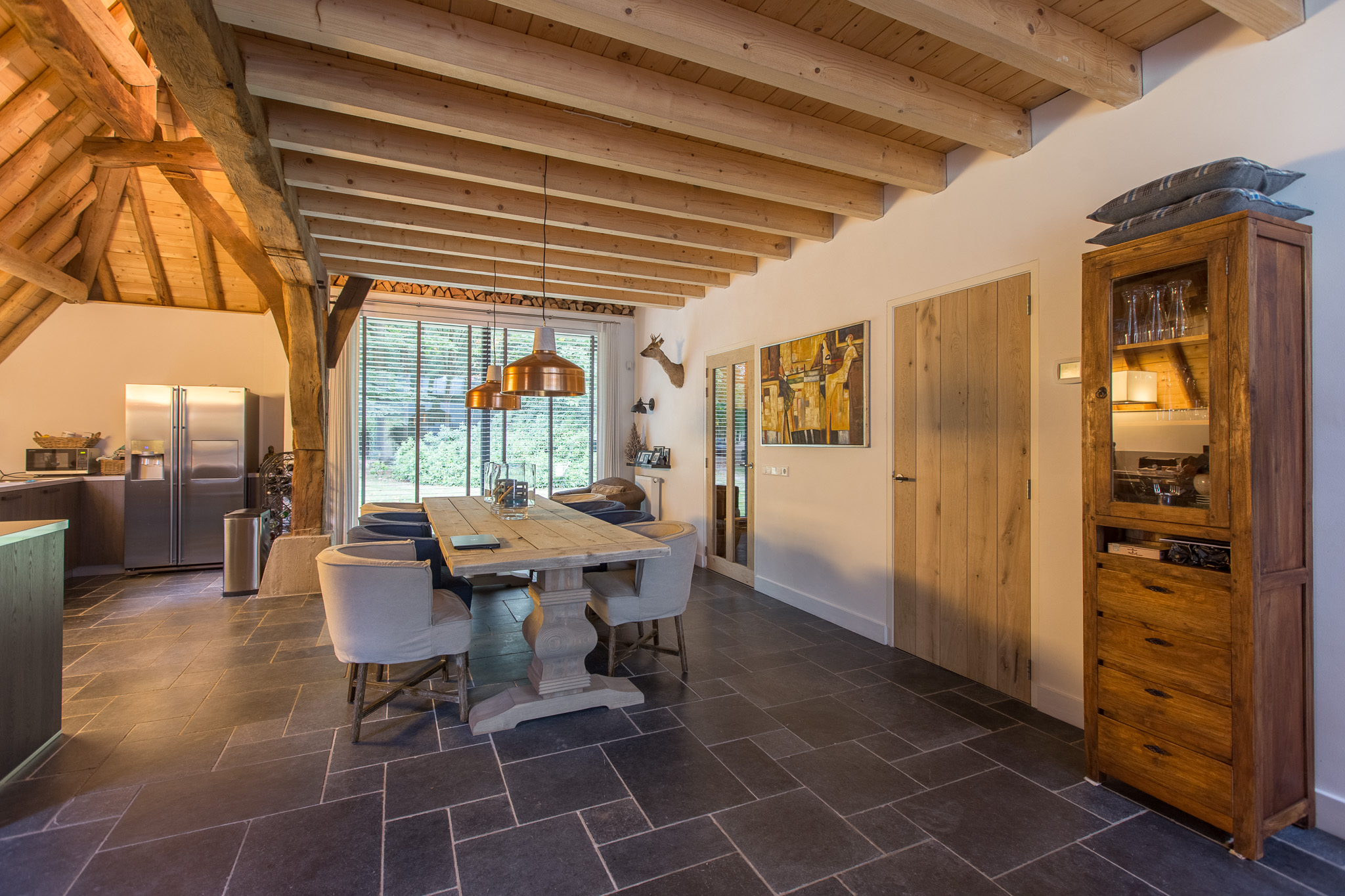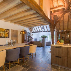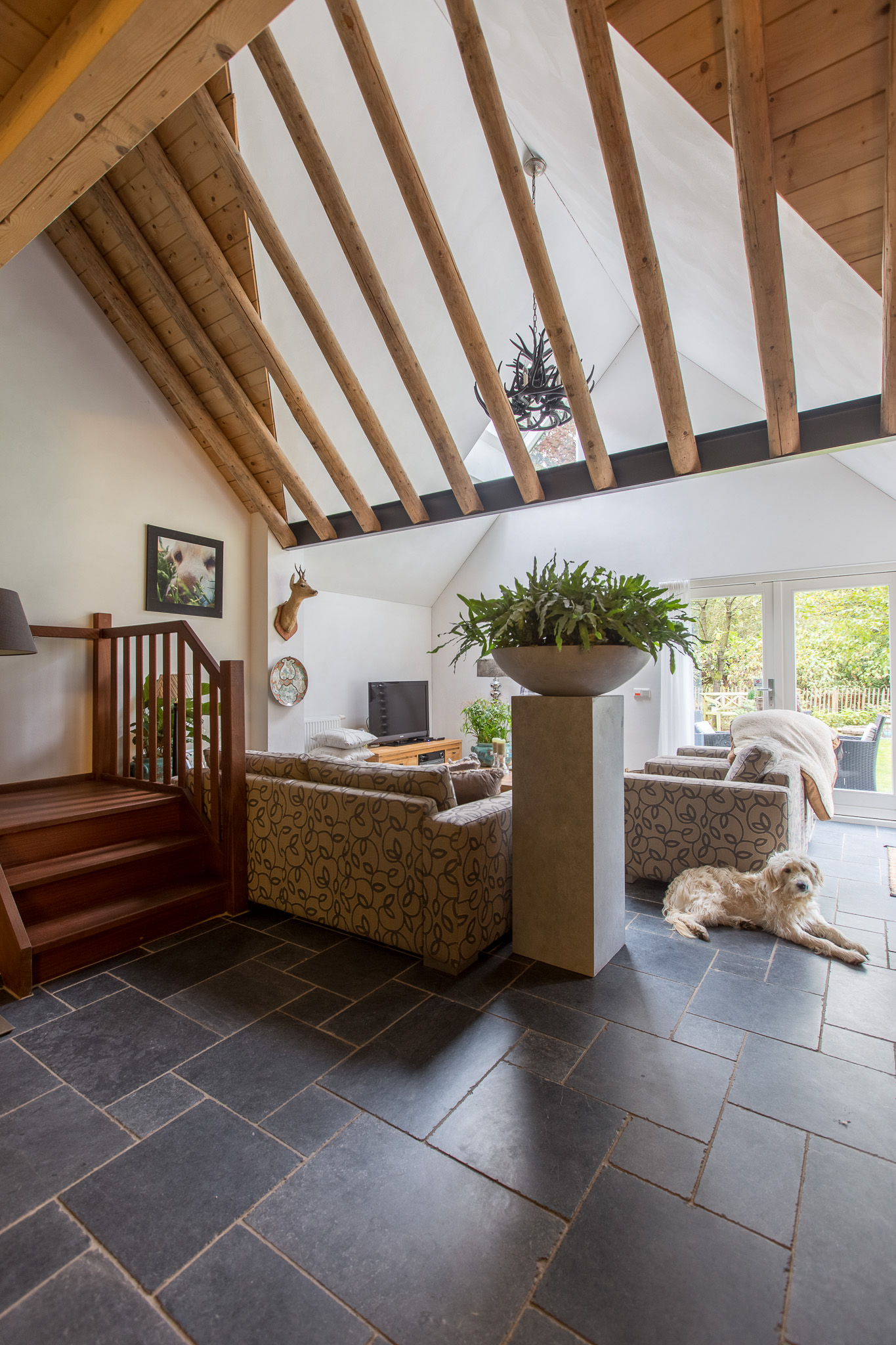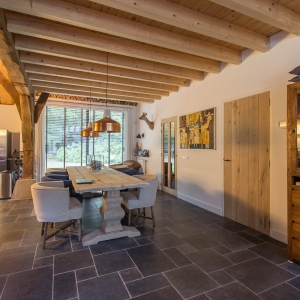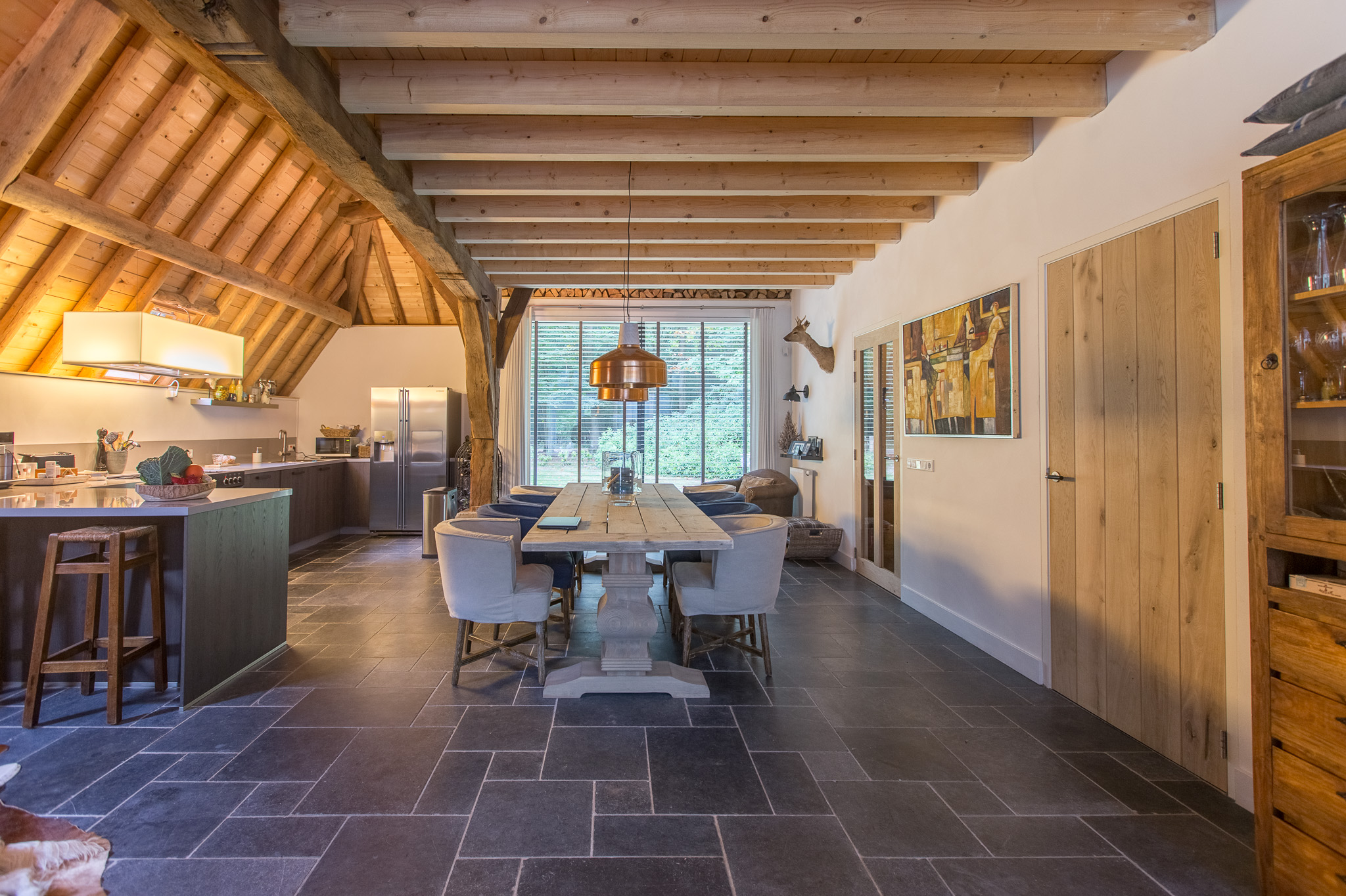 Door de vloer te verwerken in een zogenaamd Romaans verband, past deze vloer perfect bij de uitstraling van het pand en het interieur. Schitterend!