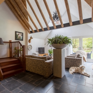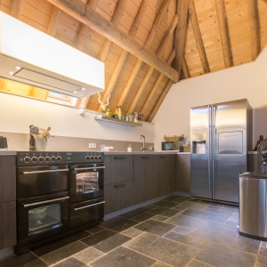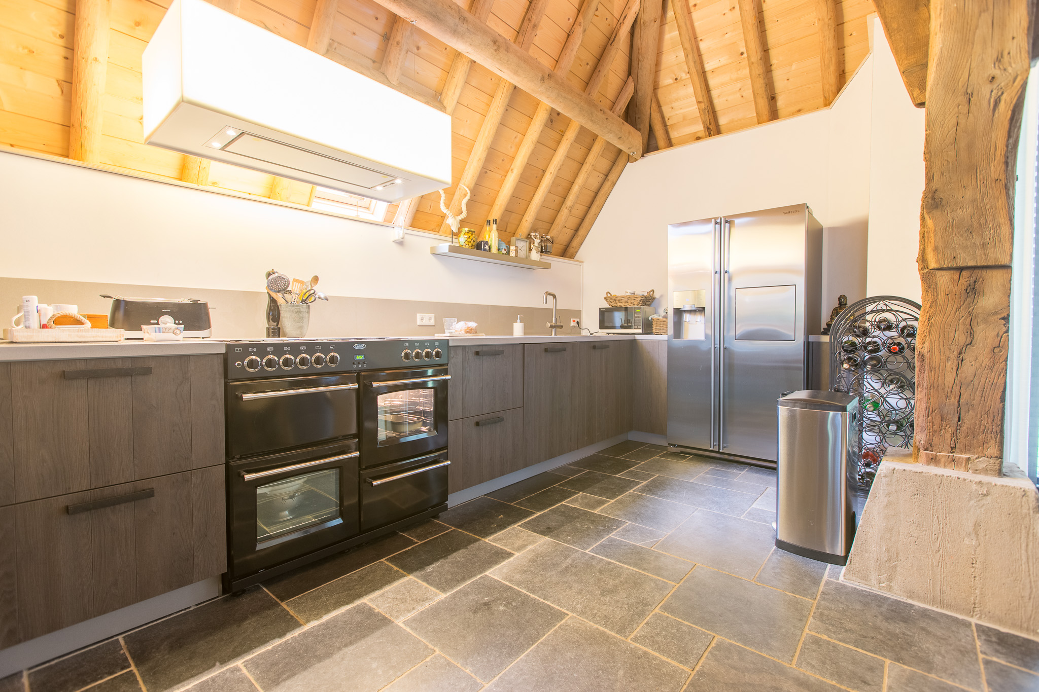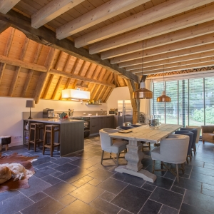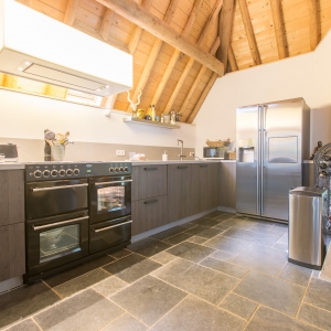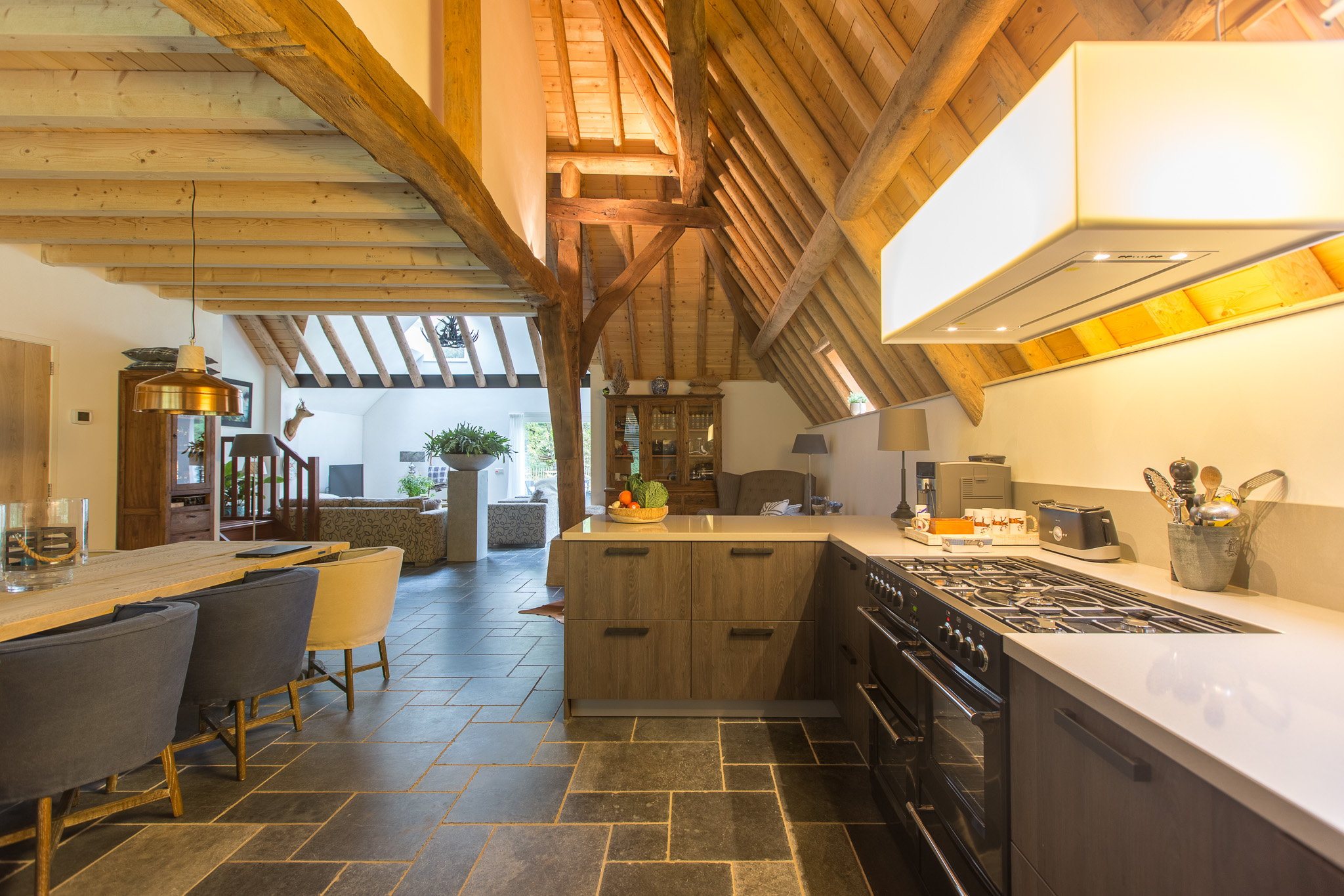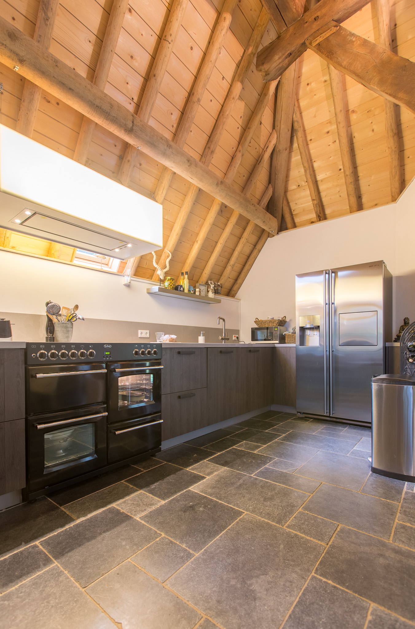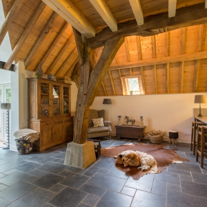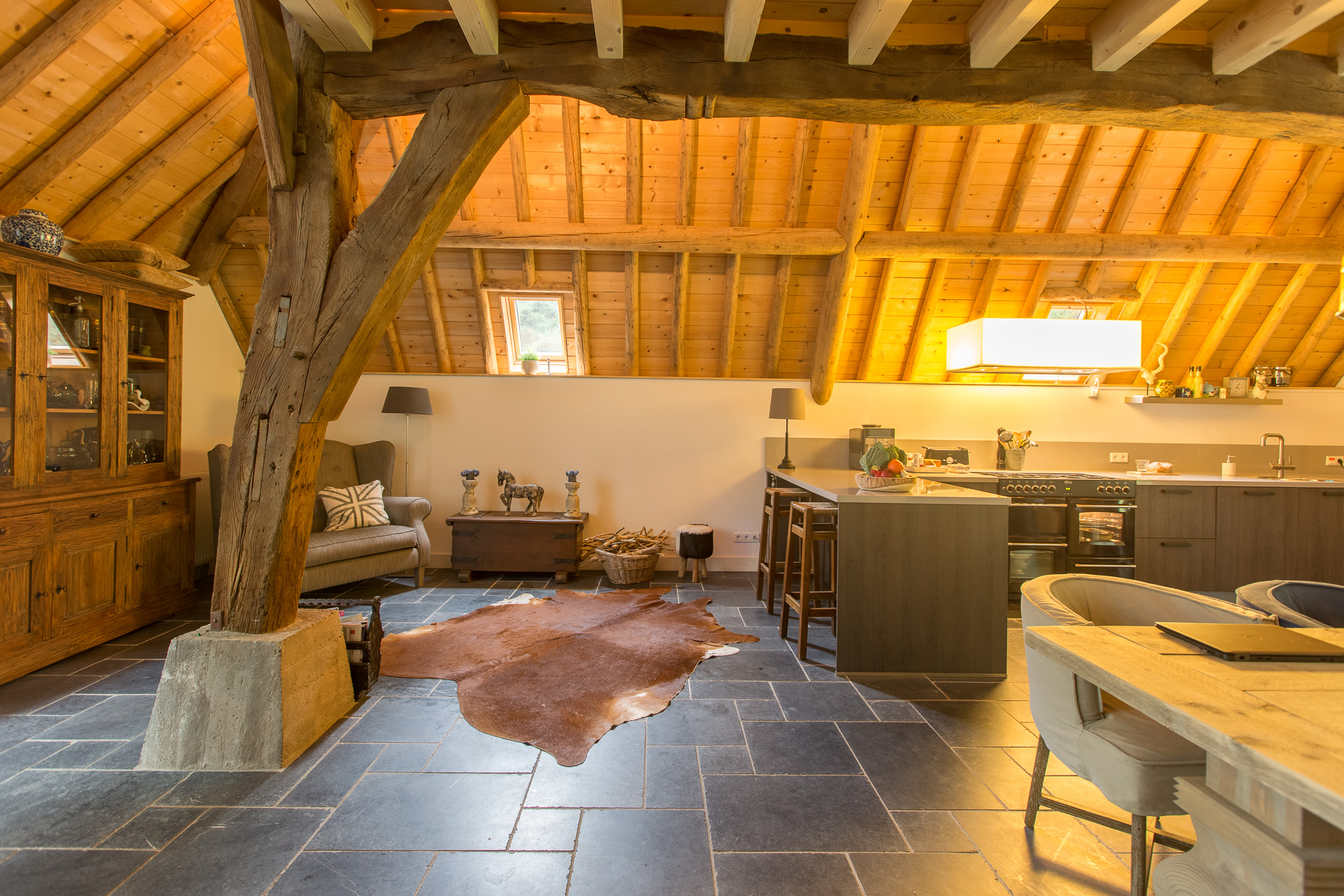 Door de vloer te verwerken in een zogenaamd Romaans verband, past deze vloer perfect bij de uitstraling van het pand en het interieur. Schitterend!
