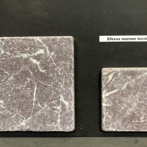 De Efesus Stone Marmer Bordeaux is een speciale en bijzondere bordeaux kleurige marmer/kalksteen. De kleurencombinaties in deze steen vindt u niet vaak terug in natuurstenen. Daardoor heeft deze steen een exclusief karakter. De verdere veroudering geeft de Efesus Stone Marmer Bordeaux een authentiek uiterlijk. Het Soft Finish oppervlak kan wel tegen een stootje en wordt naar de mening van velen alleen maar mooier naarmate de tegels in gebruik genomen worden. Een krasje hier, een krasje daar maakt de vloer of wandtegels net wat meer eigen en doorleefd.