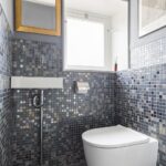 Door de warme combinatie van lichte grijze donker blauwe mix van metallic kleuren past deze mozaiek perfect bij zowel landelijke als moderne ruimtes.
