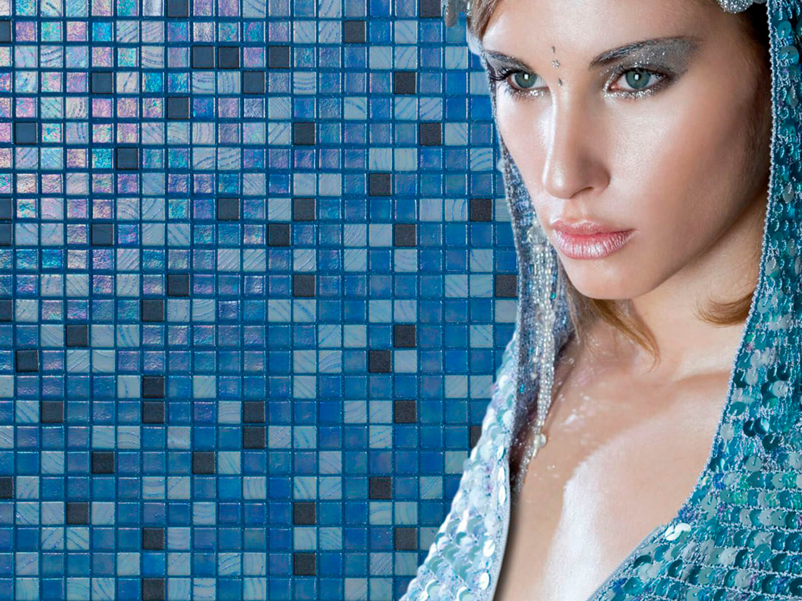 De Long Island uit de Cocktail collectie van Ezarri is een mooie mix van geolied lichtblauw en donkerblauw stukken Glasmozaïek welke perfect combineert perfect met elk ander materiaal.