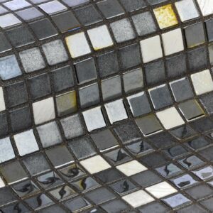 De San Fransisco uit de Cocktail collectie van Ezarri is een mooie mix van geolied donkerblauw wit en zwart stukken Glasmozaïek welke perfect combineert perfect met elk ander materiaal.