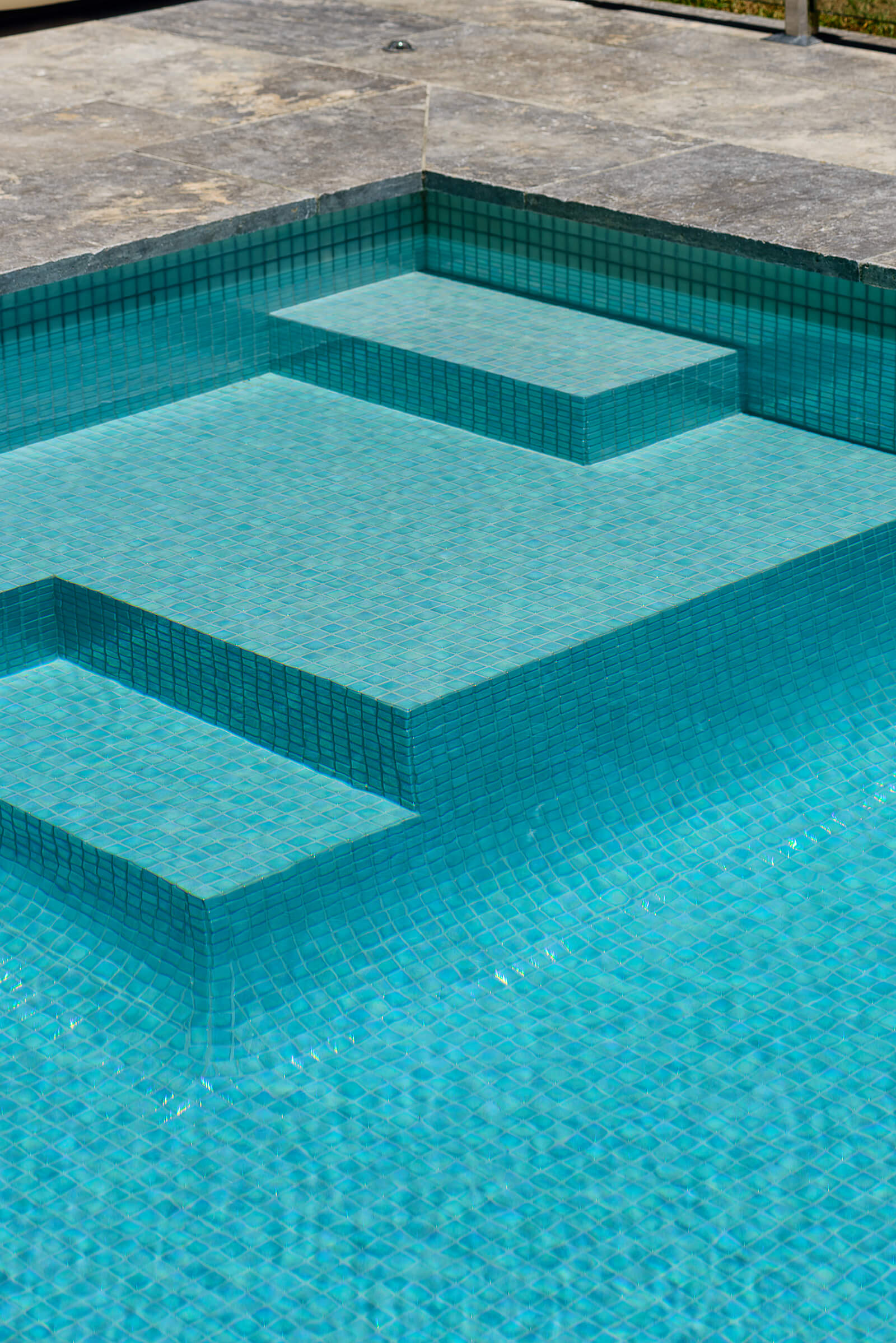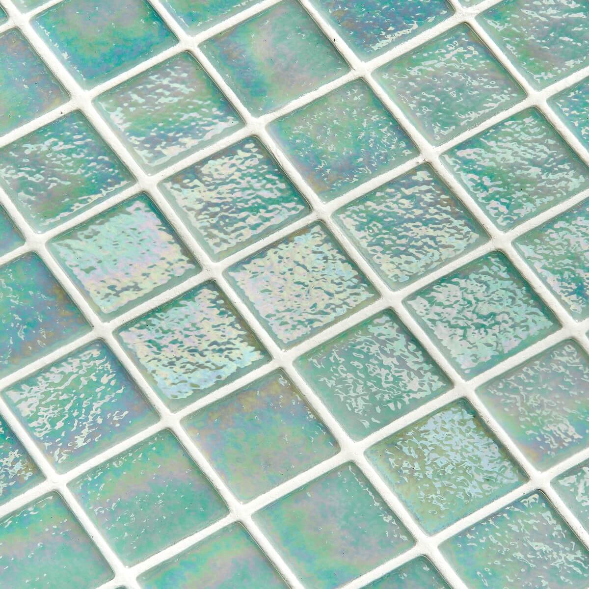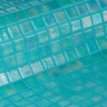 De Coral uit de Iris collectie van Ezarri met zijn zeegroen zeeblauw stukken Glasmozaïek welke perfect combineert met elk ander materiaal.