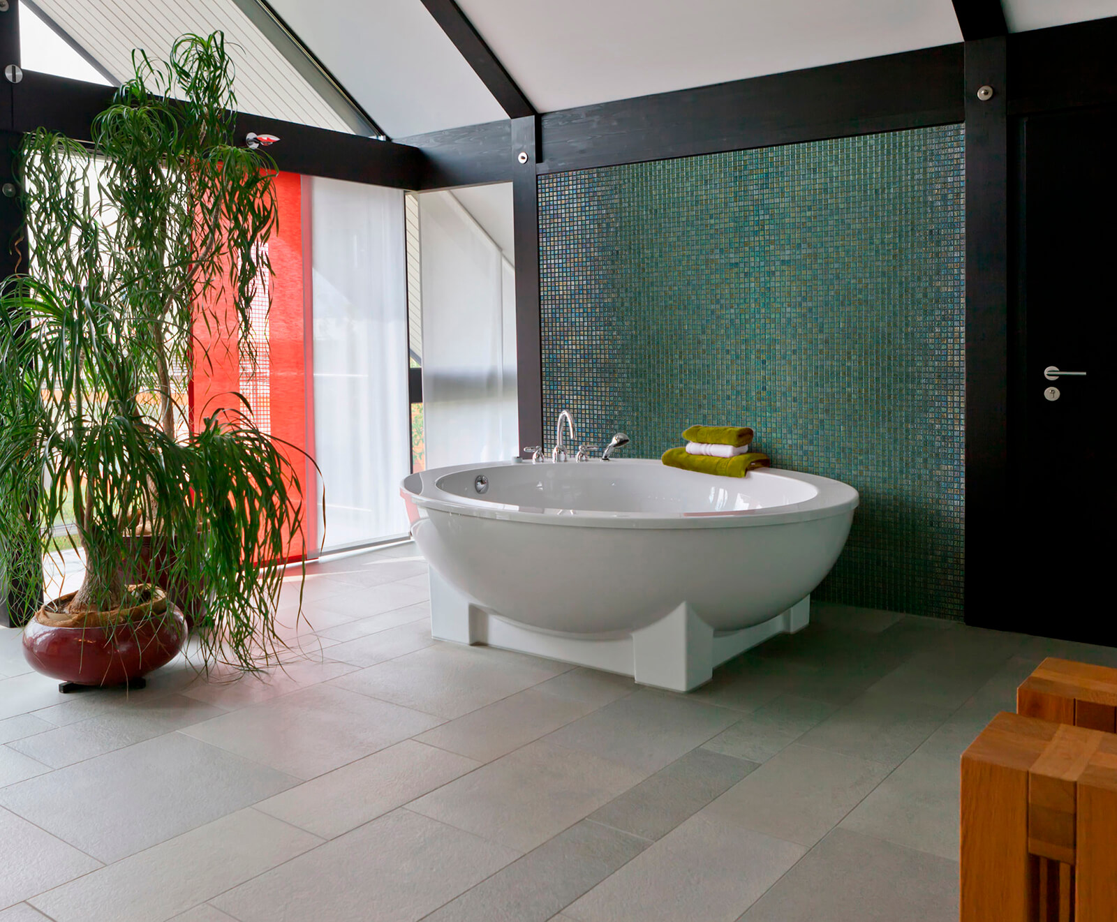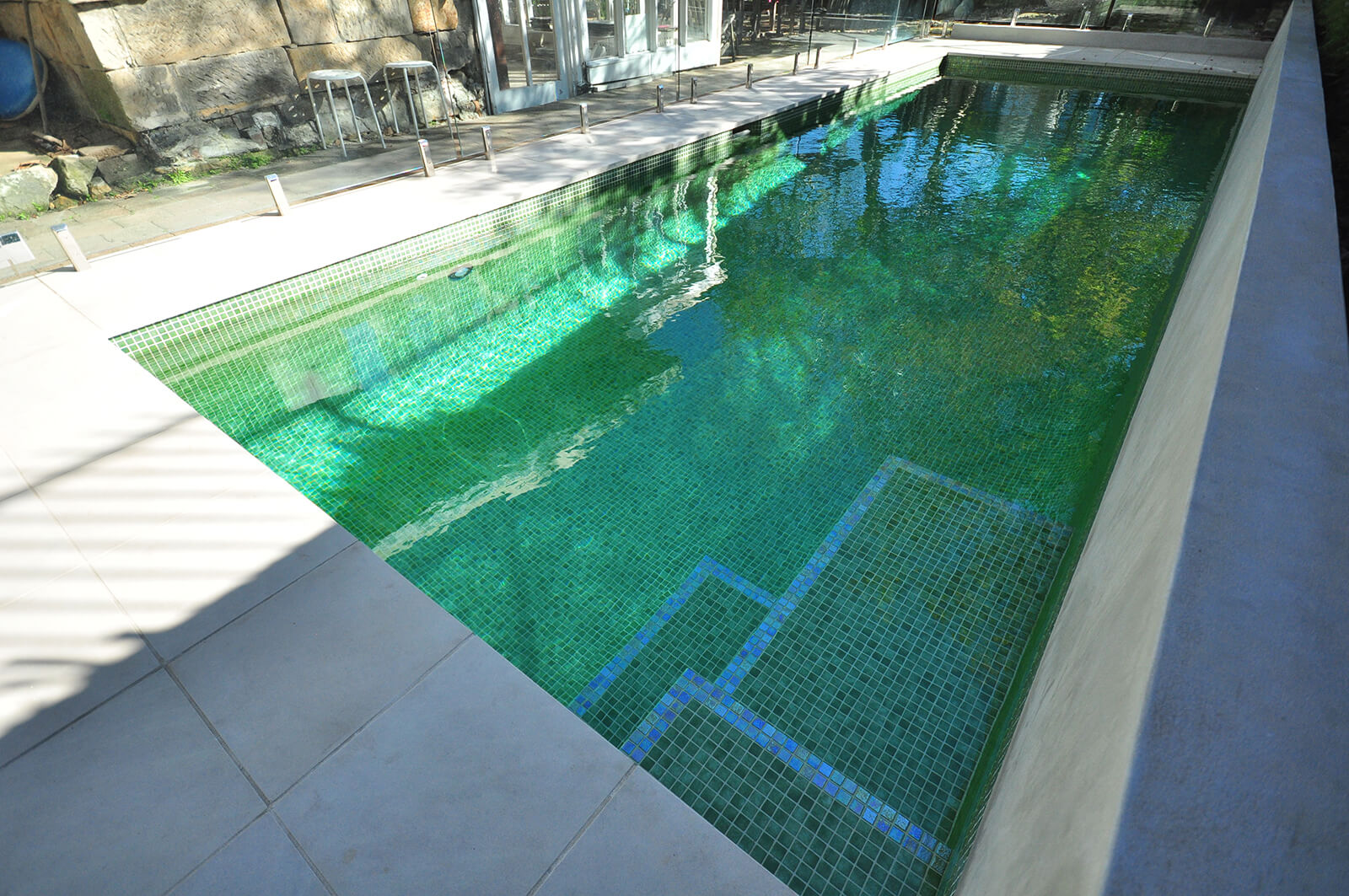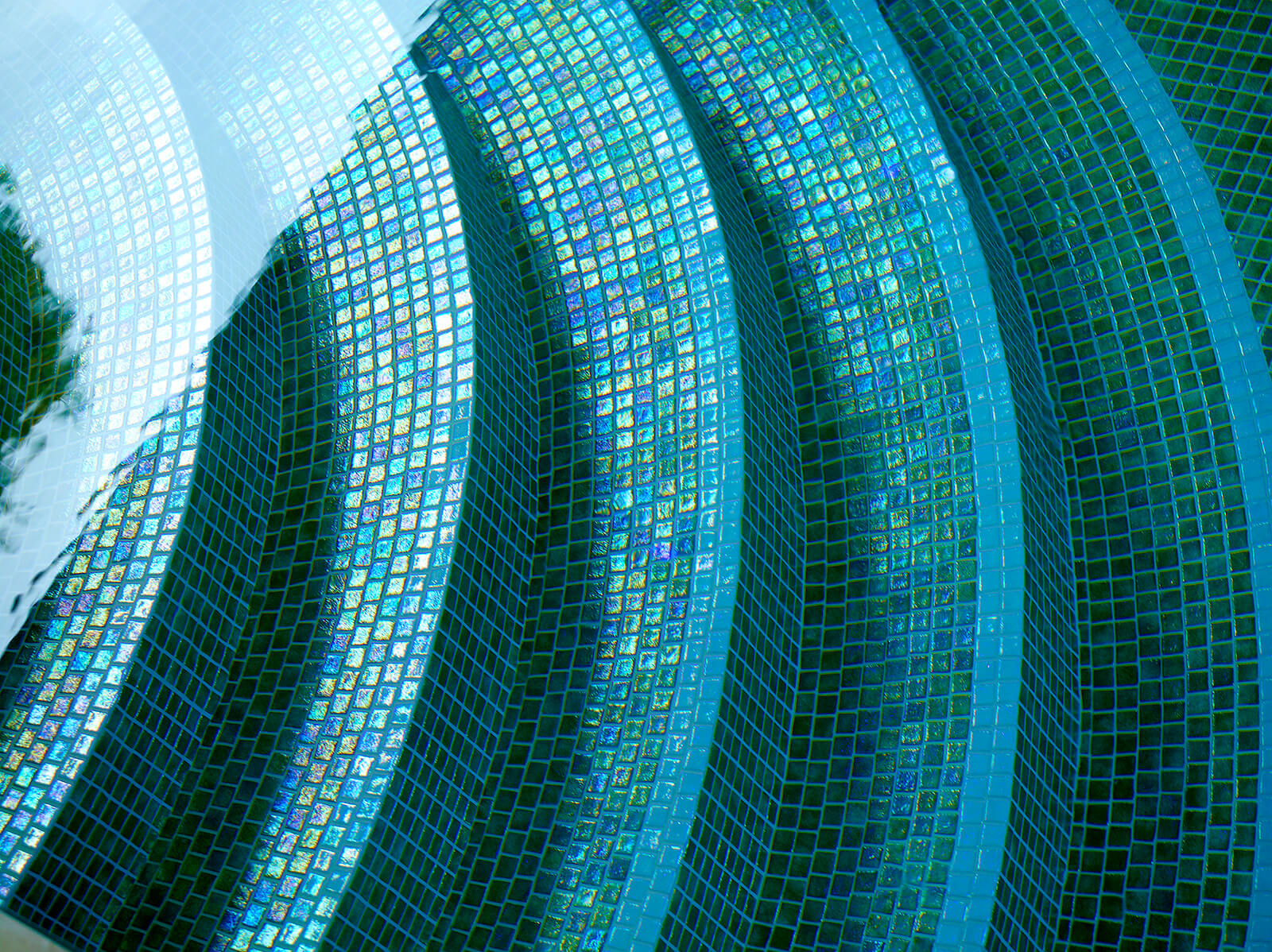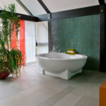 De Green Pearl uit de Iris collectie van Ezarri met zijn groene stukken Glasmozaïek welke perfect combineert met elk ander materiaal.