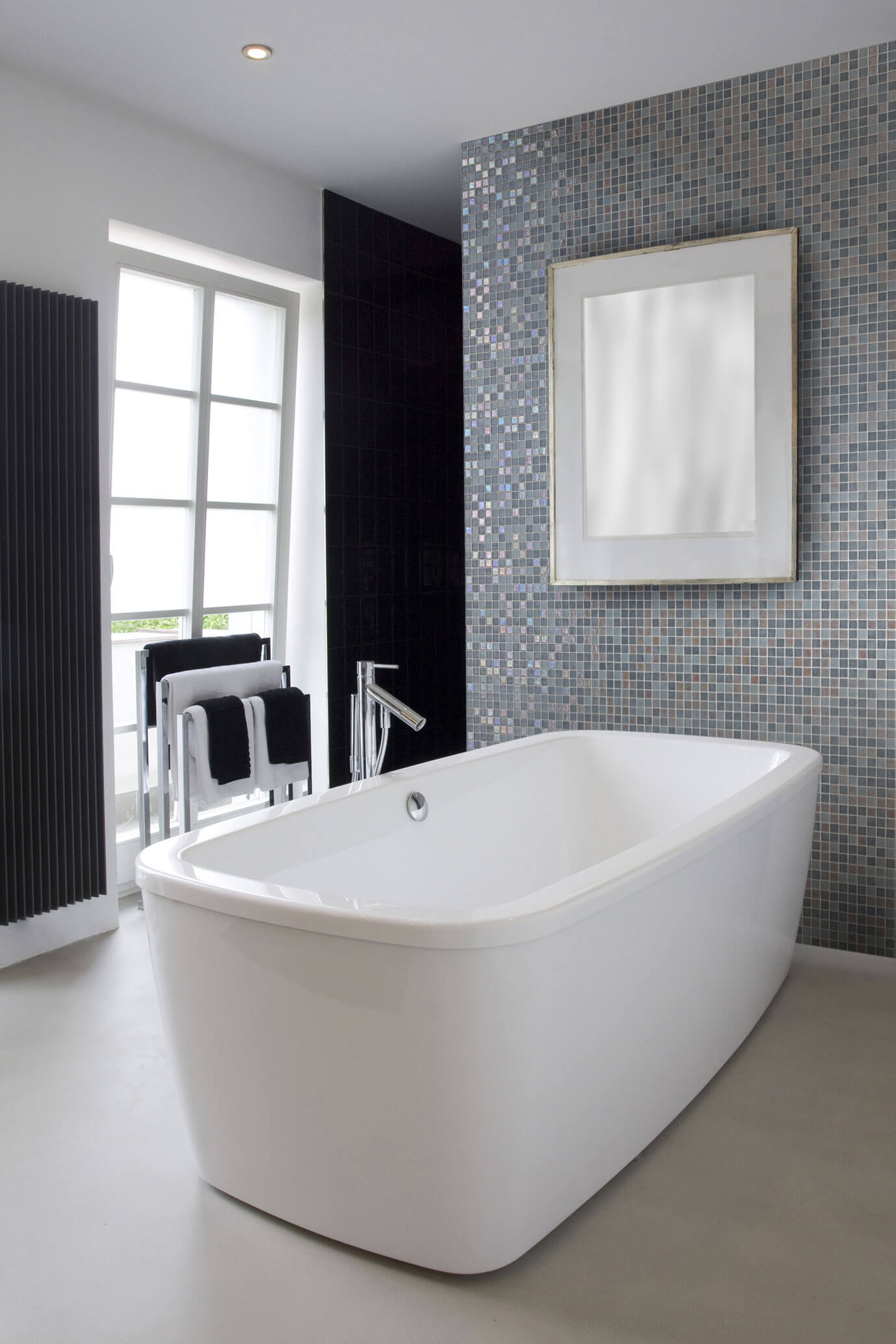 De Moon uit de Iris collectie van Ezarri met zijn lichtrose en grijze stukken Glasmozaïek welke perfect combineert met elk ander materiaal.