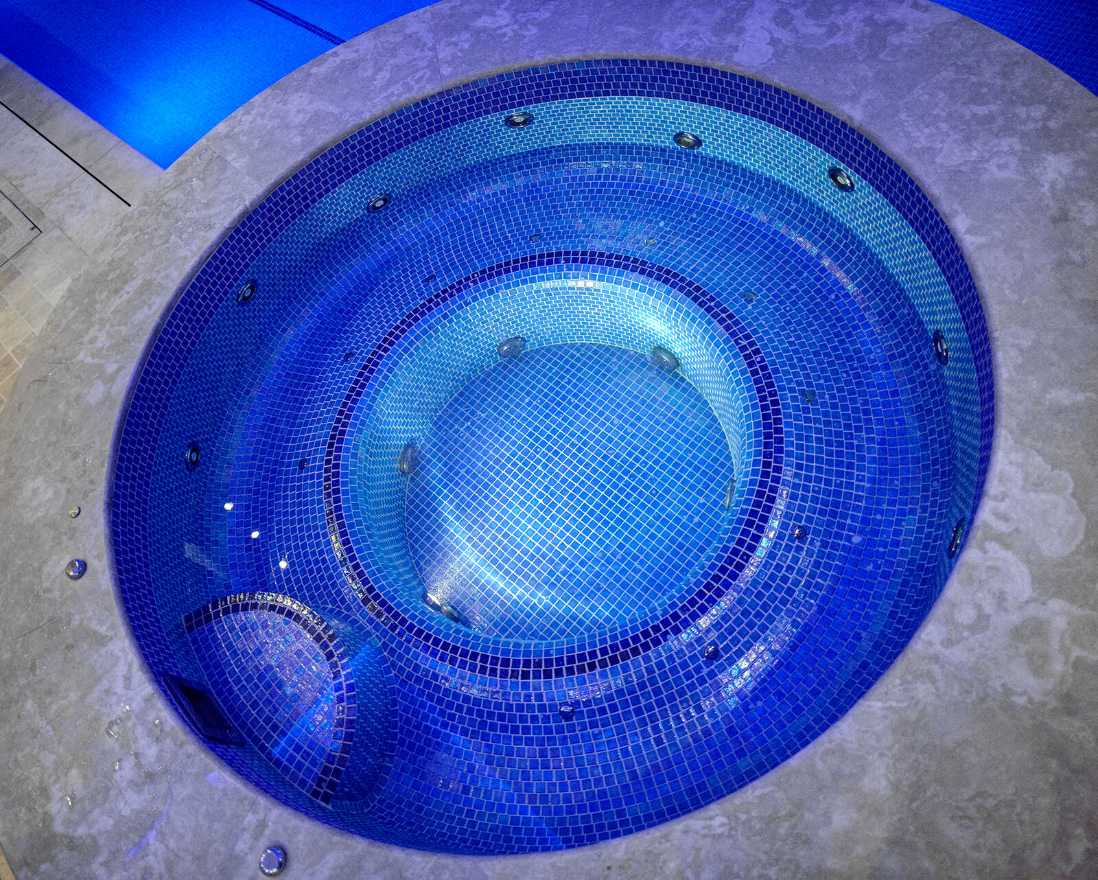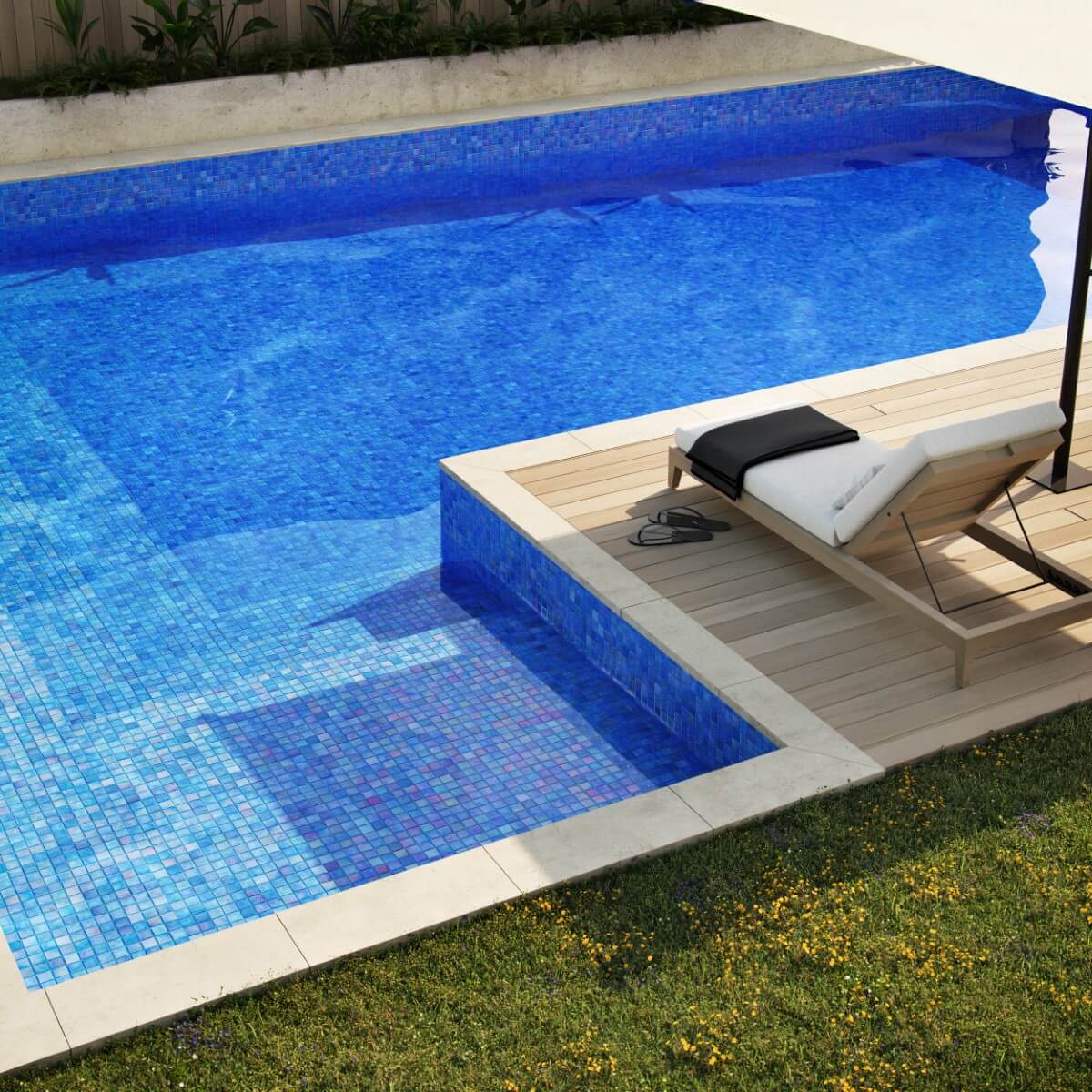 De Ocean uit de Iris collectie van Ezarri met zijn donkere blauw en diepblauwe stukken Glasmozaïek welke perfect combineert met elk ander materiaal.