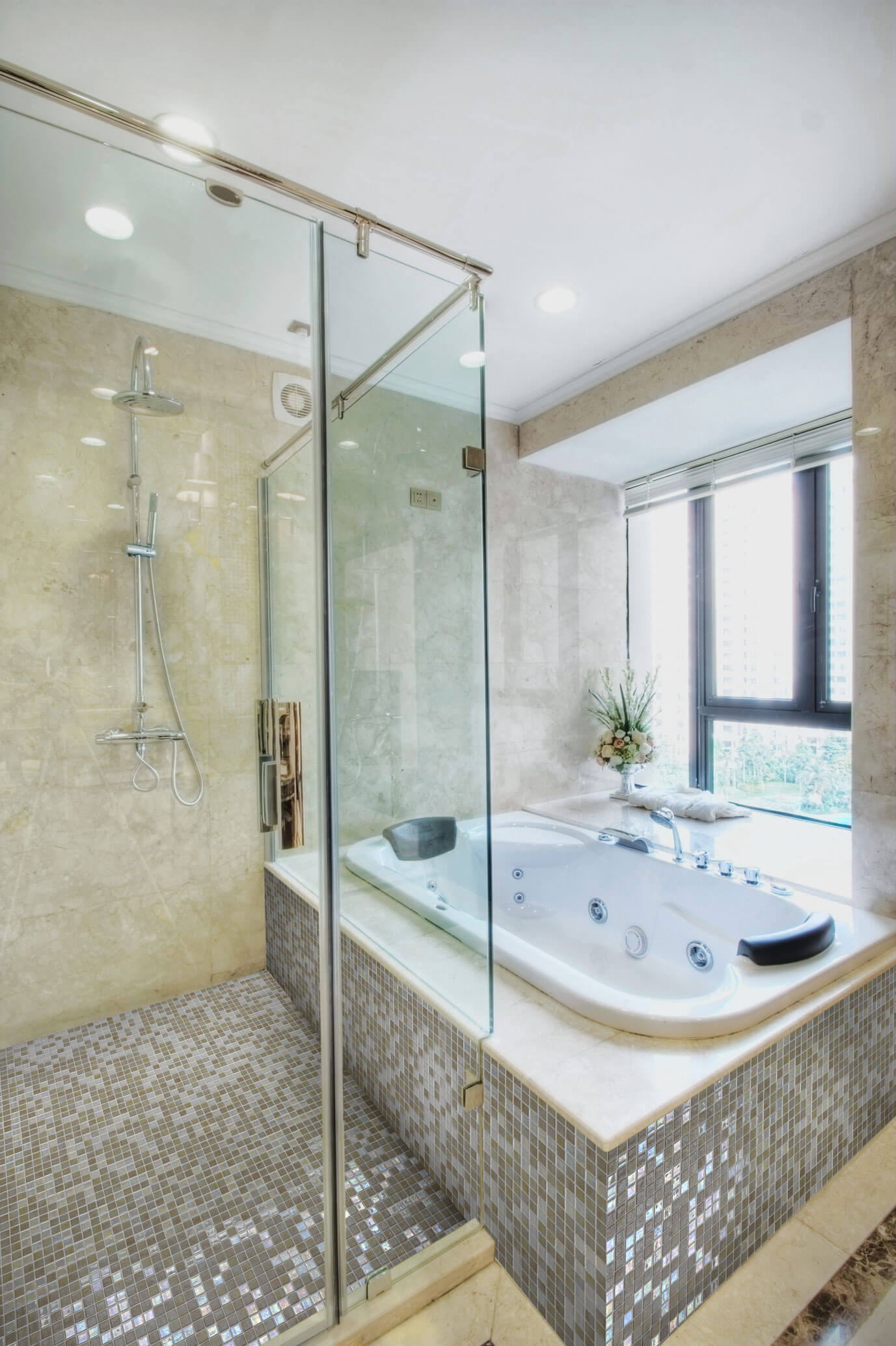 De Sahara uit de Iris collectie van Ezarri met zijn lichte zandbeige en gele stukken Glasmozaïek welke perfect combineert met elk ander materiaal.