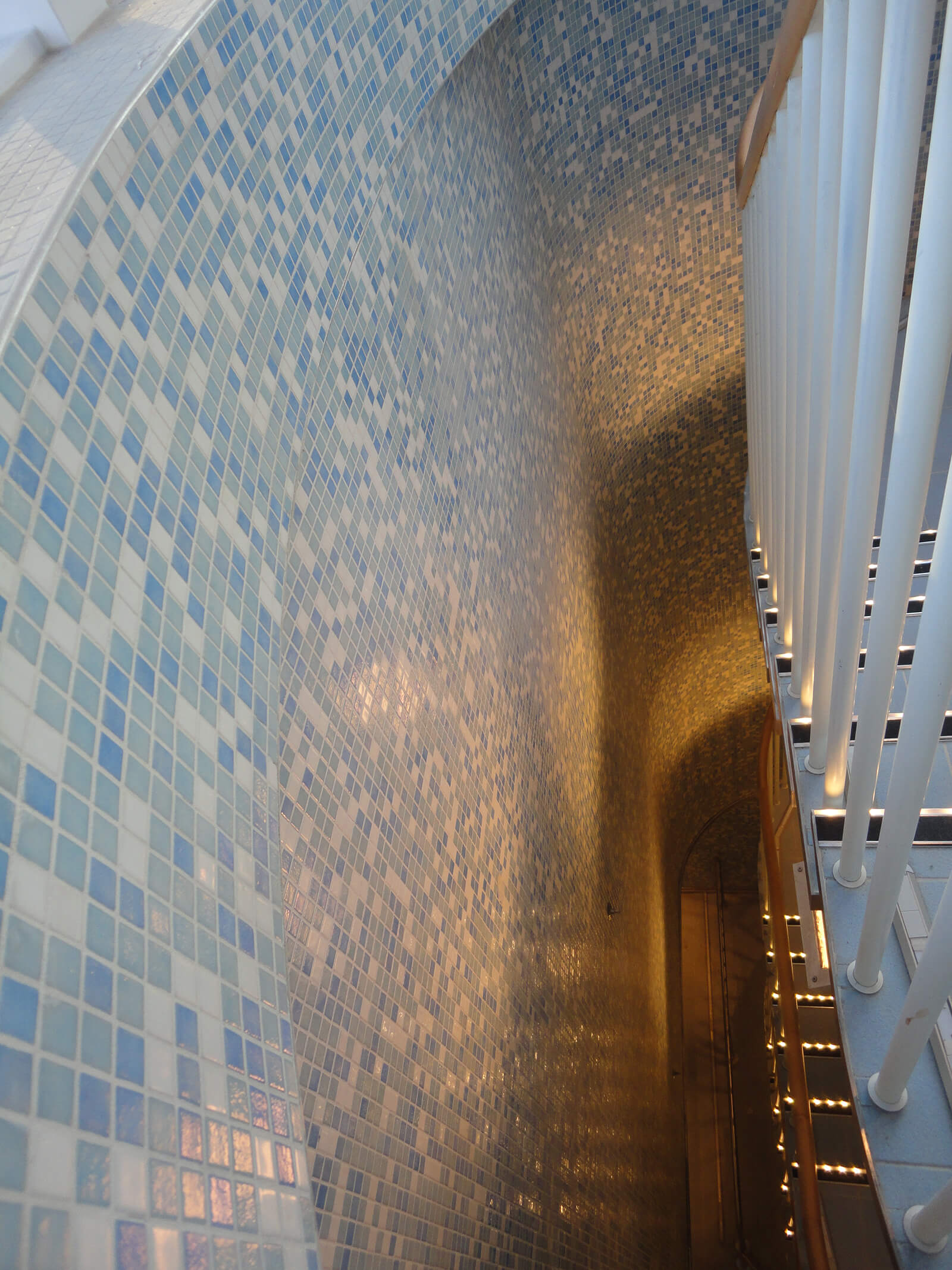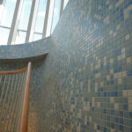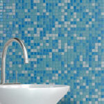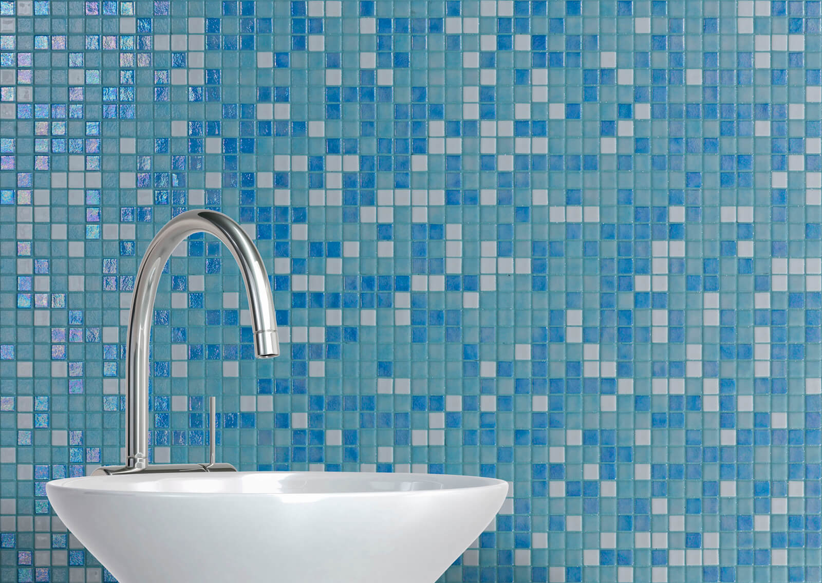 De Sky uit de Iris collectie van Ezarri met zijn lichte hemelblauw en donkerblauwe stukken Glasmozaïek welke perfect combineert met elk ander materiaal.
