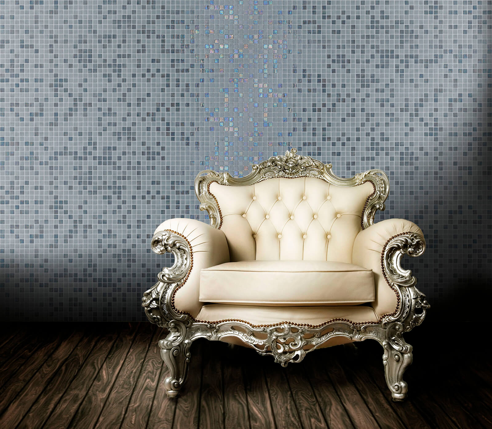 De Stone uit de Iris collectie van Ezarri met zijn mooie donkergrijze en lichtgrijze stukken Glasmozaïek welke perfect combineert met elk ander materiaal.
