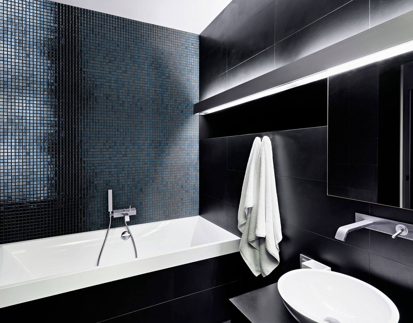 De Lava uit de Metal collectie van Ezarri met zijn donkere antraciet metallic steentjes stukken Glasmozaïek welke perfect combineert met elk ander materiaal.