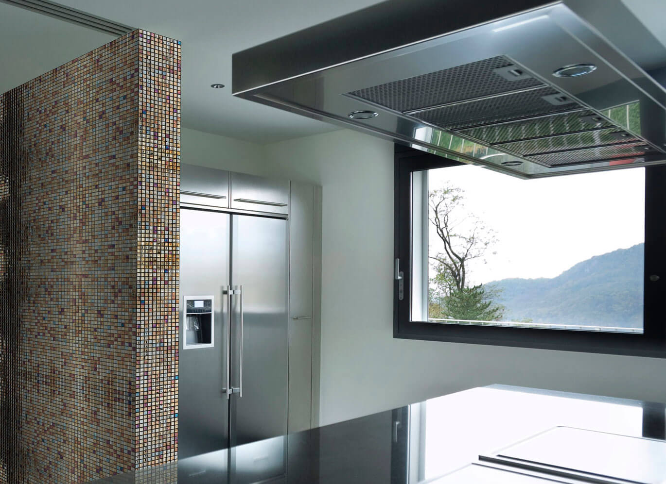 Door de reflectie van het metaal past deze strakke mozaiek perfect bij zowel landelijke als moderne ruimtes.