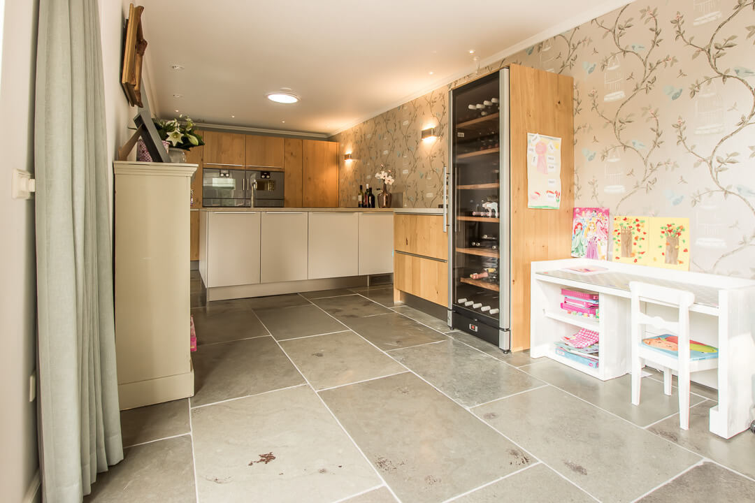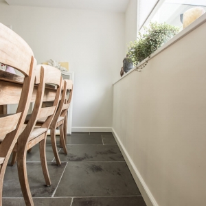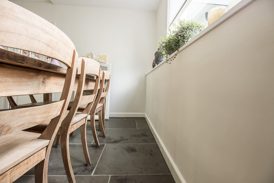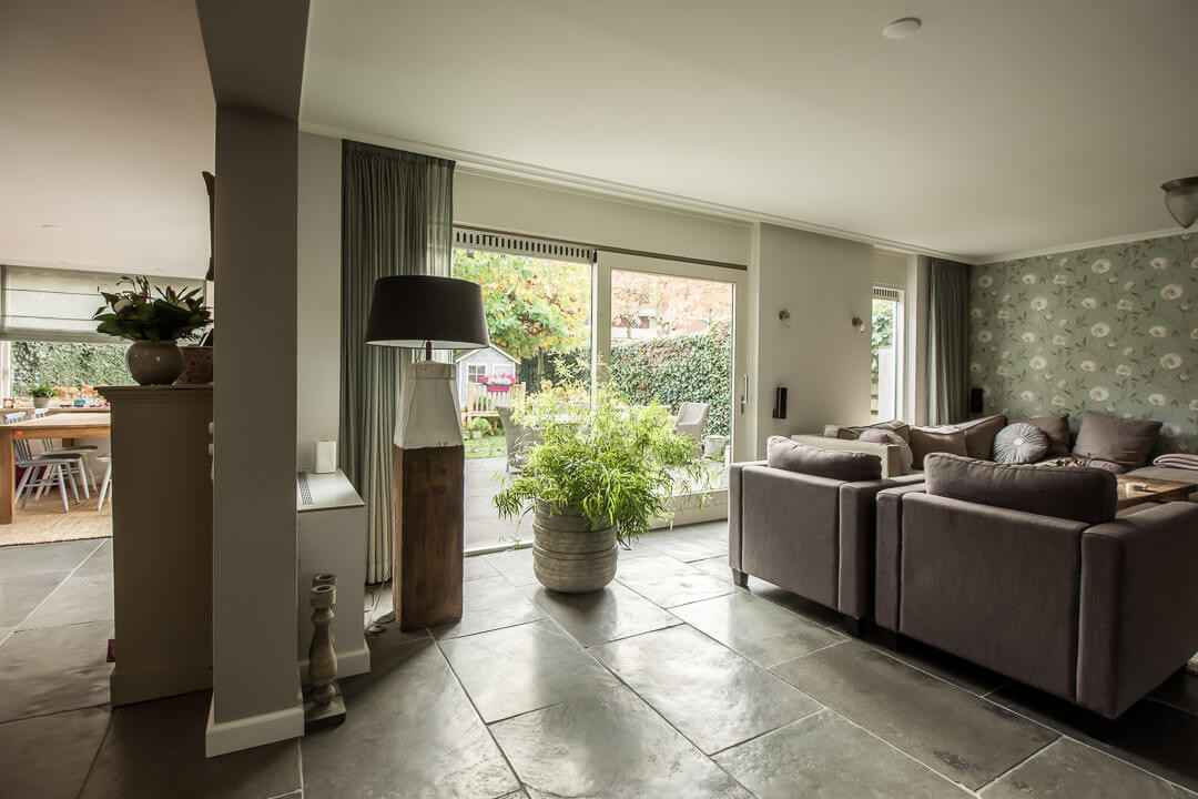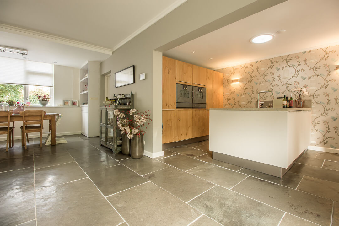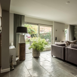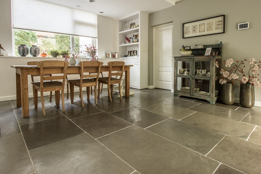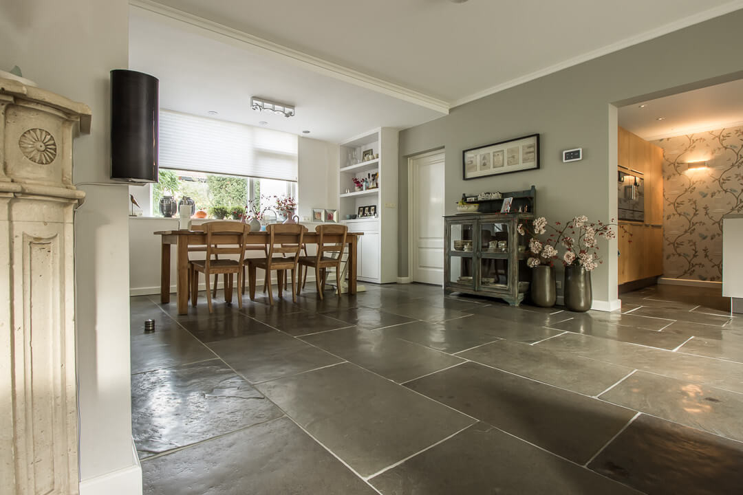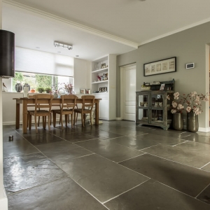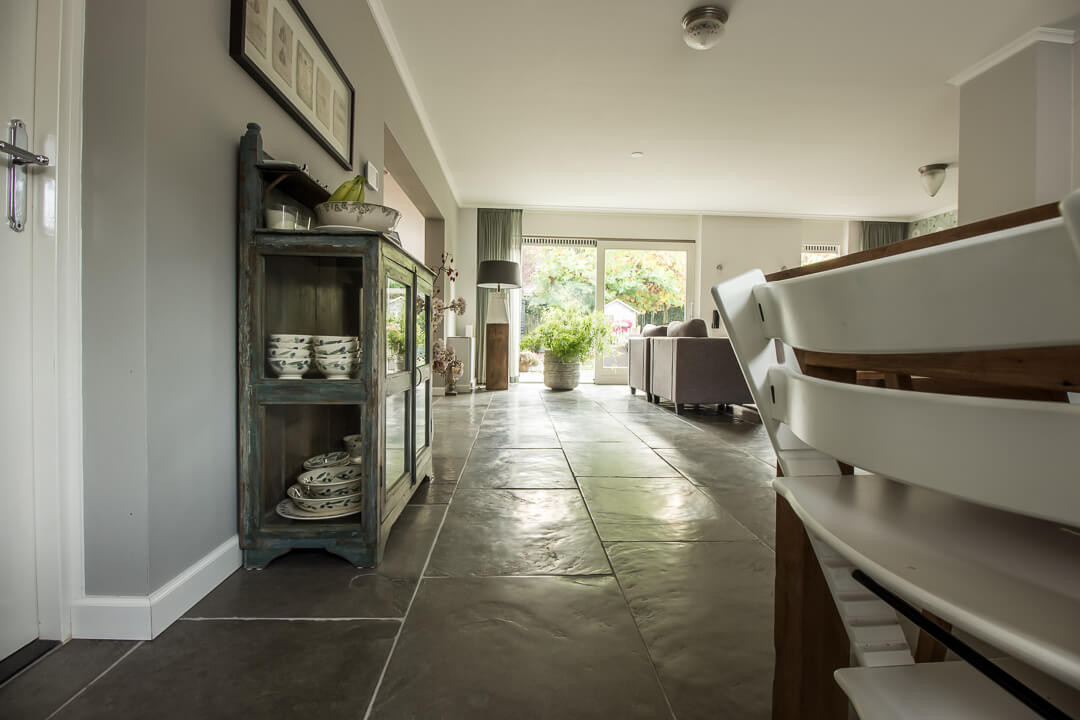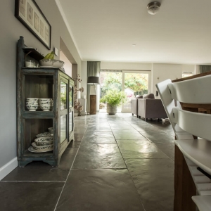 De Fam. Bakker wilde graag een prachtige natuurstenen vloer met een geborsteld oppervlak voor op de benedenverdieping van hun huis. Tijdens een bezoekje aan onze showroom heeft de Fam. Bakker gekozen voor de Indigo Historic. Dit is een prachtige tegel met paarse kleurtinten die vrij zeldzaam zijn in natuursteen.