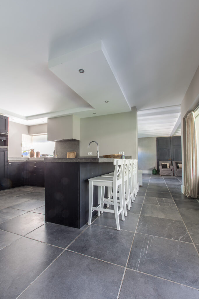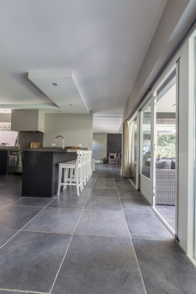 De licht zandgeschuurde Vietnamese hardsteen is een prachtige rustieke tegel die direct opviel bij de familie Boudewijn. Nadat de familie eerder al eenzelfde tegel bij ons had afgenomen, wisten ze ons na 2 jaar direct weer te vinden.
