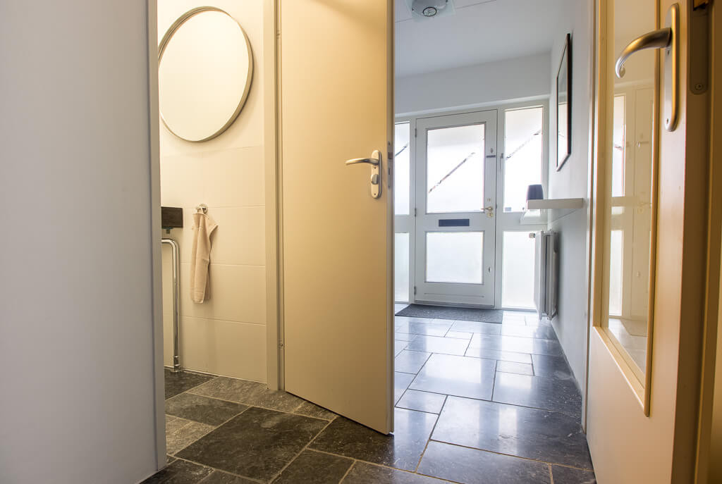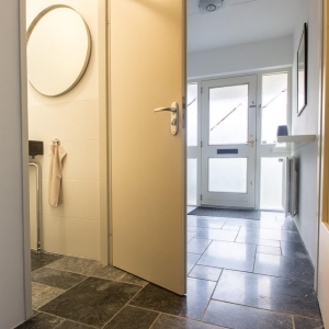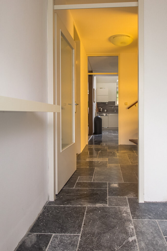 Wij van “Van den Heuvel & Van Duuren” hebben de tegels geleverd in Romaans verband. Vervolgens zijn deze tegels netjes verwerkt in de hal, toilet en keuken van de woning.