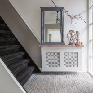 Fam. Cornege koos voor hun hal en toilet uiteindelijk voor de Chateau Carreau ijsselsteentjes in de kleur Calais. Het resultaat mag er wezen.