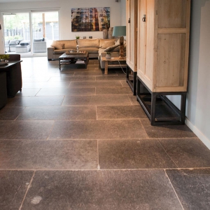Deze Belgisch Hardsteen is eerst licht geschuurd, alvorens het manueel is verouderd, waardoor het zijn unieke uitstraling krijgt. Een natuursteen die, dankzij deze afwerking, vrij makkelijk is in het gebruik. Slijtagesporen zullen niet opvallen en indien het Belgisch Hardsteen geïmpregneerd is, neemt deze ook geen vet, vocht of olie meer op.