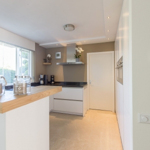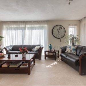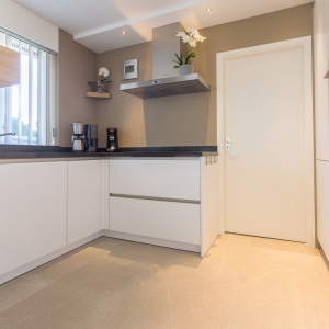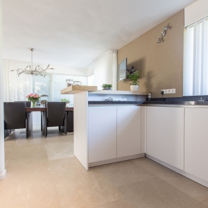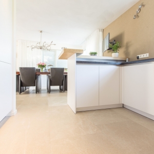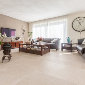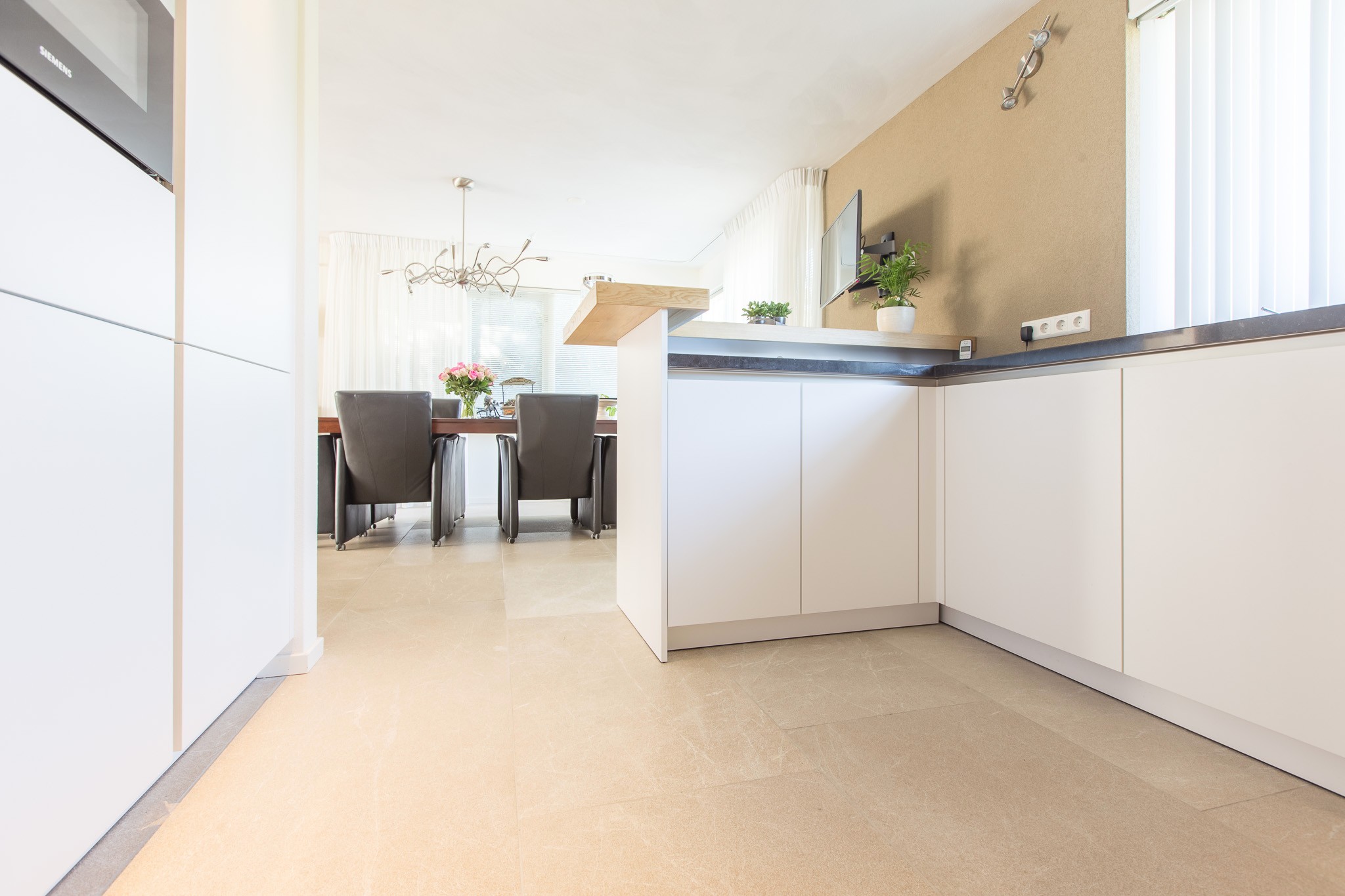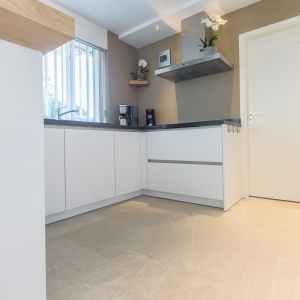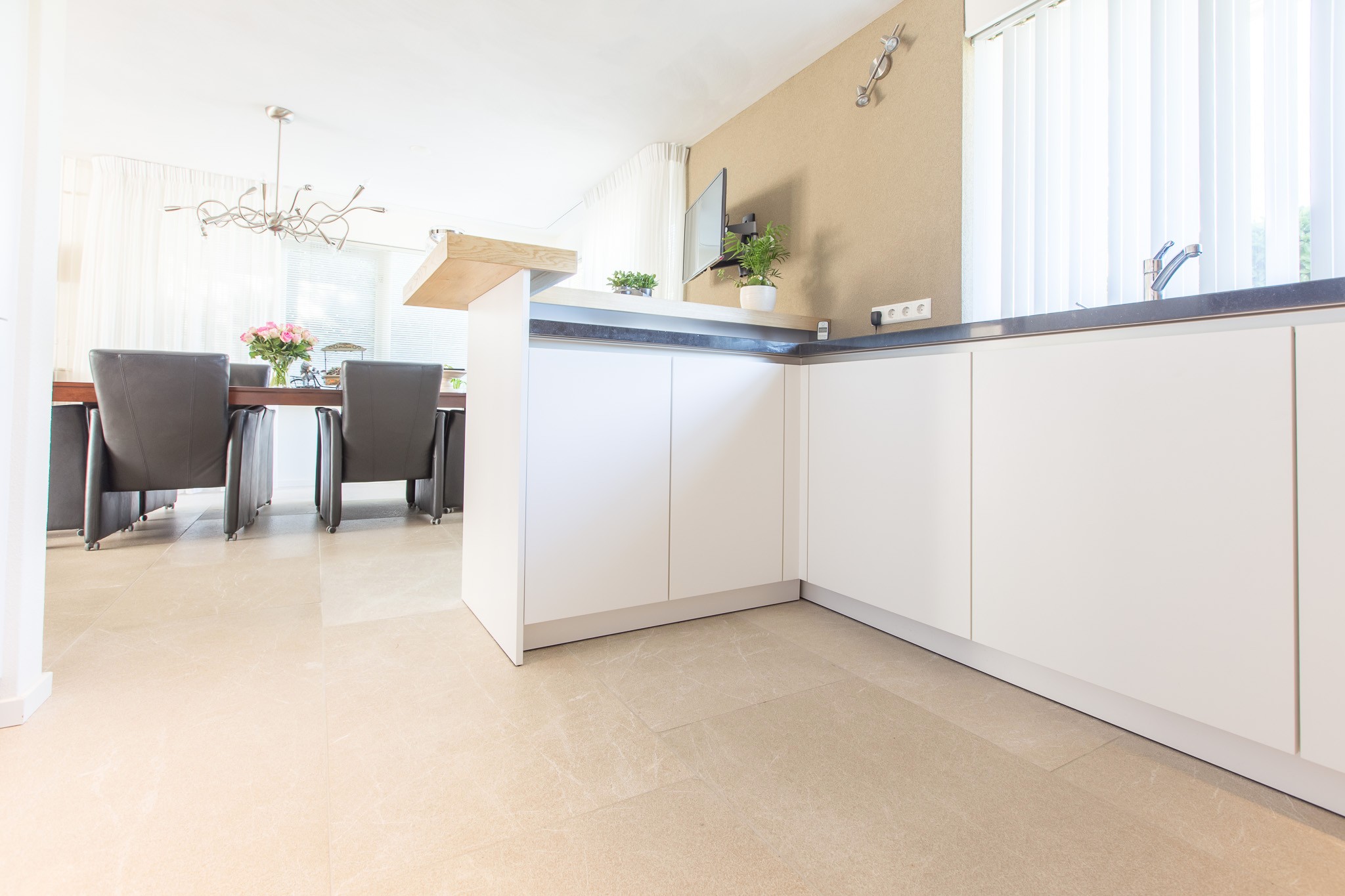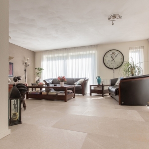Familie de Kwaasteniet zocht voor de benedenverdieping een sfeervolle vloer. Uiteindelijk hebben ze deze gevonden in de Marrakesh Beige “Velvet Finish”, banen 60 cm. breed. Het resultaat is warm en uitnodigend.